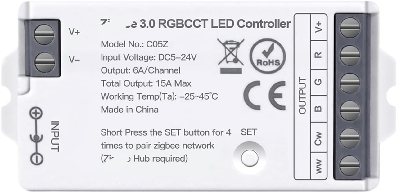 Low-Voltage TransformersType: LED Light Strip ControllerStatic color: monochrome, CCT, RGB, RGBW, RGBCCTBrightness: 0~100%Power supply voltage: DC5V-24VOutput: 1-5 channels<;6A/CH, total maximum 15A