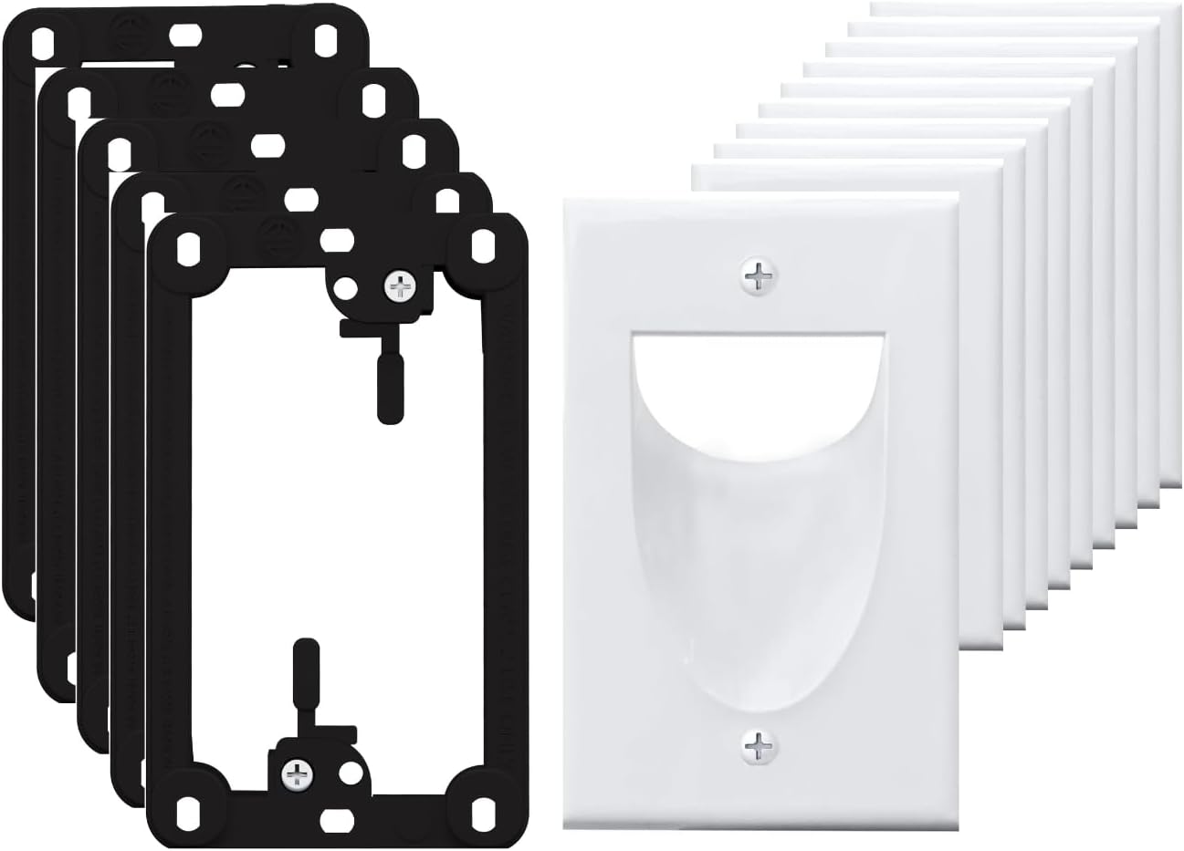 BestMounts behind wall cable management, conceal cords on wall are the perfect solution to the tv-mounting nightmare. Pass low voltage cables through walls with a clean and simple install by using our all-inclusive cable plate packs. Just choose the cable plate size that's appropriate for your application! Use the Easy Low Voltage Cable Plate to install low voltage cables behind your flat panel TV, your amplifier or other audio and video devices. The wall plate can be installed upright or upside down. 1 Gang Low Voltage Mounting Bracket is durable, flushed mounted to the wall without gap. Cutting-out template, simplify the positioning and cutting work. ELIMINATE THE GUESSING! Our combo packs alleviate the hassle of matching cable plates with proper-fitting mounting brackets. We have carefully paired our cable plates and mounting brackets to ensure proper fitment and functionality! brush wall plate brush plate,brush wall plate cable pass through,brush plate cable pass through,brush outlet cover,brush wall plate,wall brush plate,brush plates,black brush plate,low voltage brush wall plate,brush wall plate cable pass through,gang brush wall plate,low voltage brush plate,single brush wall plate,cable management brush,2 gang brush wall plate