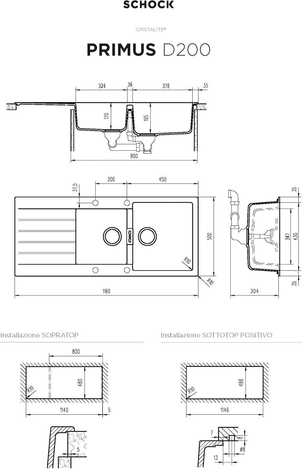 2 basin sink with draining board. Reversible The colour of the product is anthracite. Cristalite Plus material is resilient and easy to clean