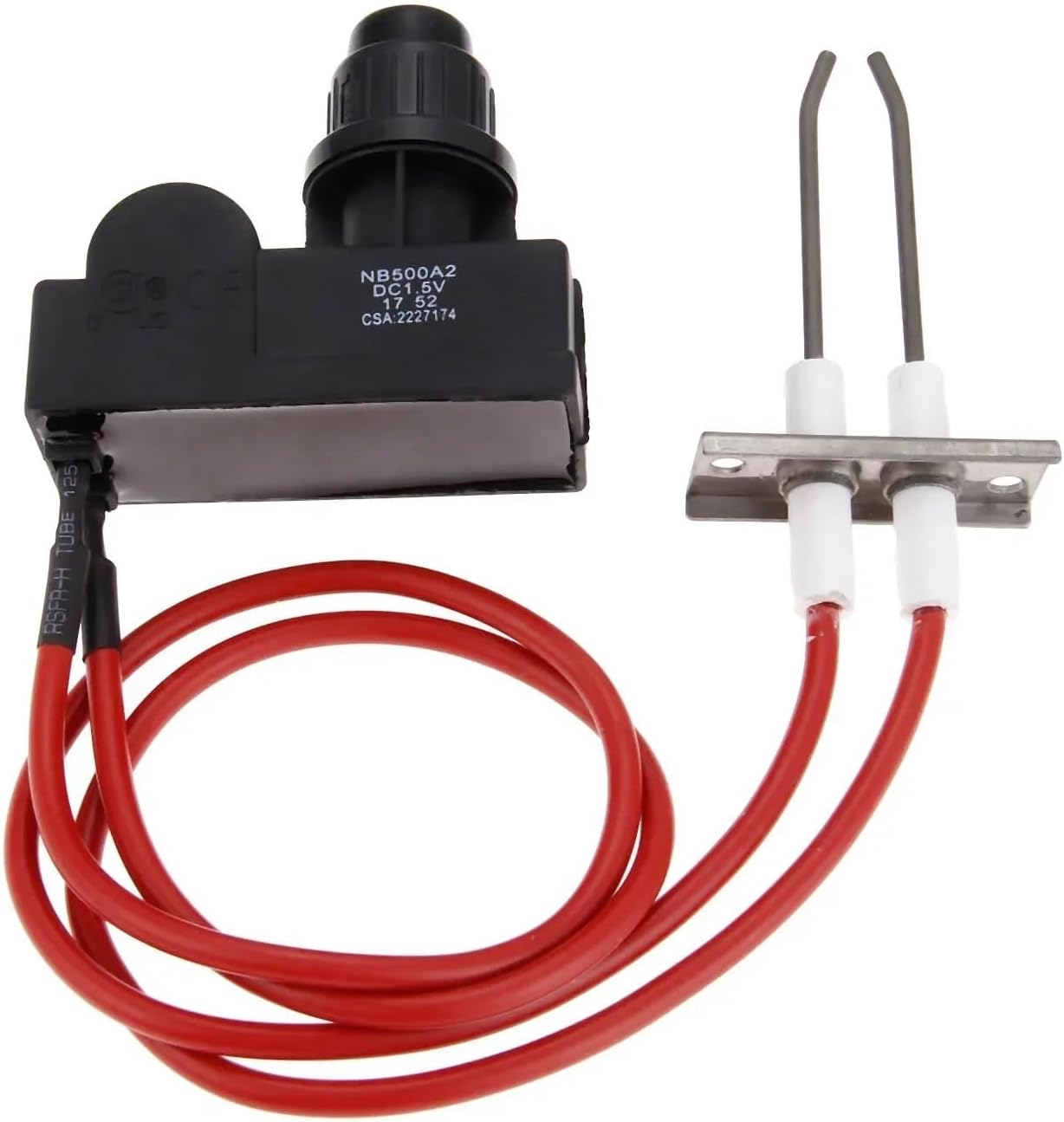 Grill IgnitersFeatures:100% .One piece of Two outlets igniterOne piece of double ignition sparkCan be used for Grill, heater, water heater etc.High efficiency Sparks also suitable for Catering equipment burnerElectronic ignition kit whole setsSpecifications:Spark wire length 450mmTemperature resistance 200(Ignition kit suitable for any gas appliance)Package List:1Pc x igniter with high Spark Wire Length 450mm Each==========High-concerned chemical : NoneType : for Grill, heater, water heater etc.Model Number : igniter with high Spark Wire Length 450mm Each