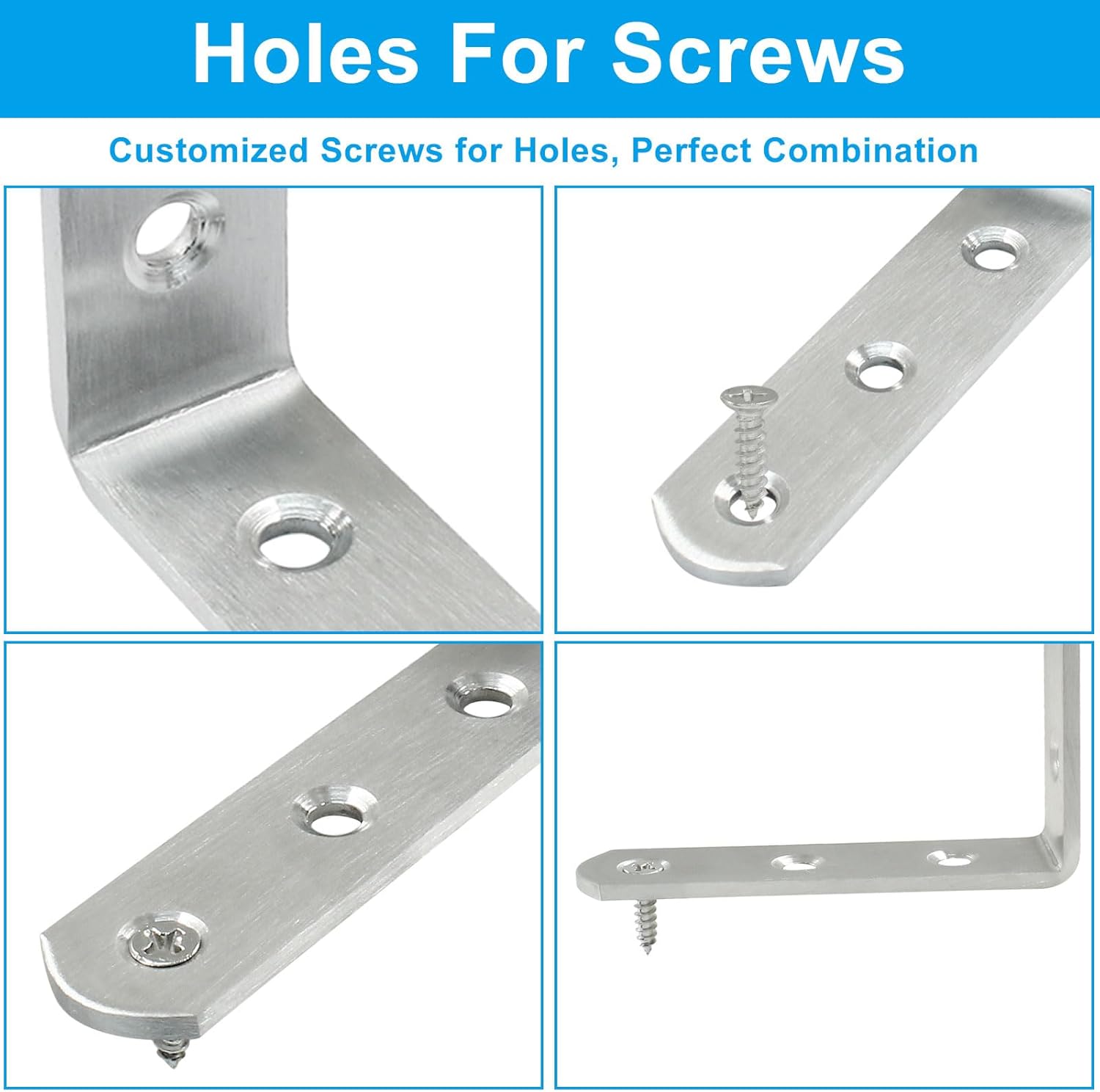 Bonsicoky is a brand that pursues high quality and provides high-quality, reliable and practical Home improvement products for global customers. Our product quality and innovation will continue to improve, and in the future we will launch more high-quality Home improvement products. We hope you like Bonsicoky products too! Specification: Product Name: L Bracket Corner Brace Material: Stainless Steel Size: As shown in the detailed diagram Color: Silver Package Includes: 4 x L Bracket Corner Brace Warm Tips: 1.The color might exist slightly difference due to different displays. 2.Please allow 1-3mm error due to manual measurement.
