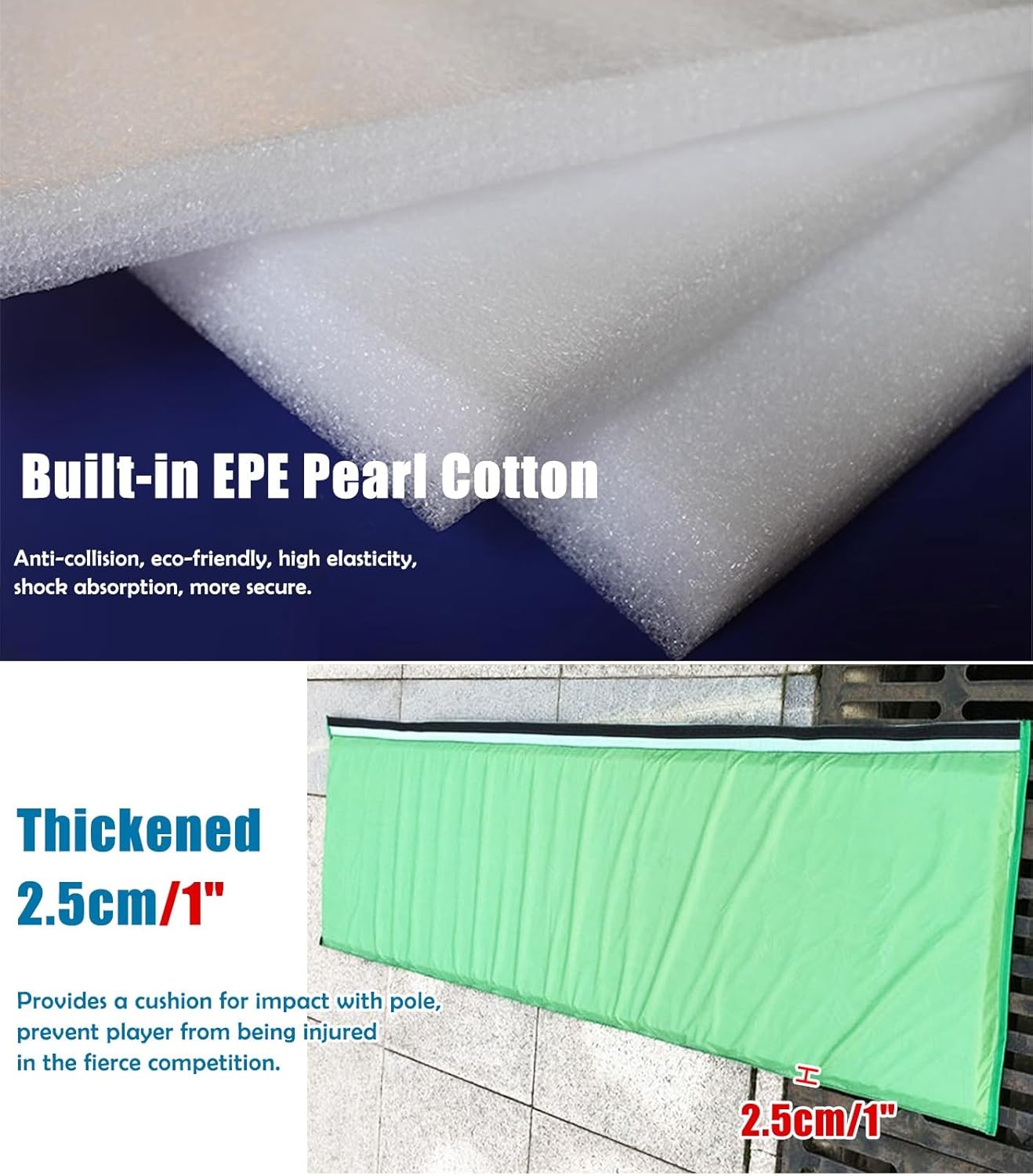 Gym Basement Pole Wrap Protection Barrier:Our basketball pole pad is designed to enhance safety during your home workouts by effectively covering the basketball pole and minimizing the risk of accidental impacts. This essential accessory transforms your playing experience, allowing you to enjoy basketball in a secure environment. **Specifications:** - **Material:** Durable PVC Mesh Fabric with Pearl Foam for cushioning - **Lining:** Robust Oxford Cloth for added protection - **Compatible Round Pole Size:** Fits poles ranging from 2.5 inches to 8 inches (6 to 20 cm) - **Height:** 6 feet (72 inches or 183 cm) - **Customization:** Available upon request for tailored sizes **Features:** - Provides added security for players, making it ideal for both home and school settings. - The wrap-around design offers comprehensive coverage, protecting against all sides. - Weather-resistant materials ensure durability in adverse conditions, including heavy rain and strong winds. - Extends the lifespan of your basketball hoop by significantly reducing wear and tear. - Versatile use: Suitable for basketball hoops, football goal posts, playground equipment, garage supports, and other vertical structures needing padding. **Package Includes:** - 1 x Basketball Pole Pad **Important Notes:** - Please allow for slight measurement variations of 1-2 cm due to manual measurement practices. - Color discrepancies may occur between the product and images due to monitor differences and lighting conditions. **Customer Support:** - For any inquiries regarding our product, feel free to reach out. We are committed to providing excellent customer service around the clock. Elevate your game with our basketball pole pad, ensuring a safer and more enjoyable experience for all players.