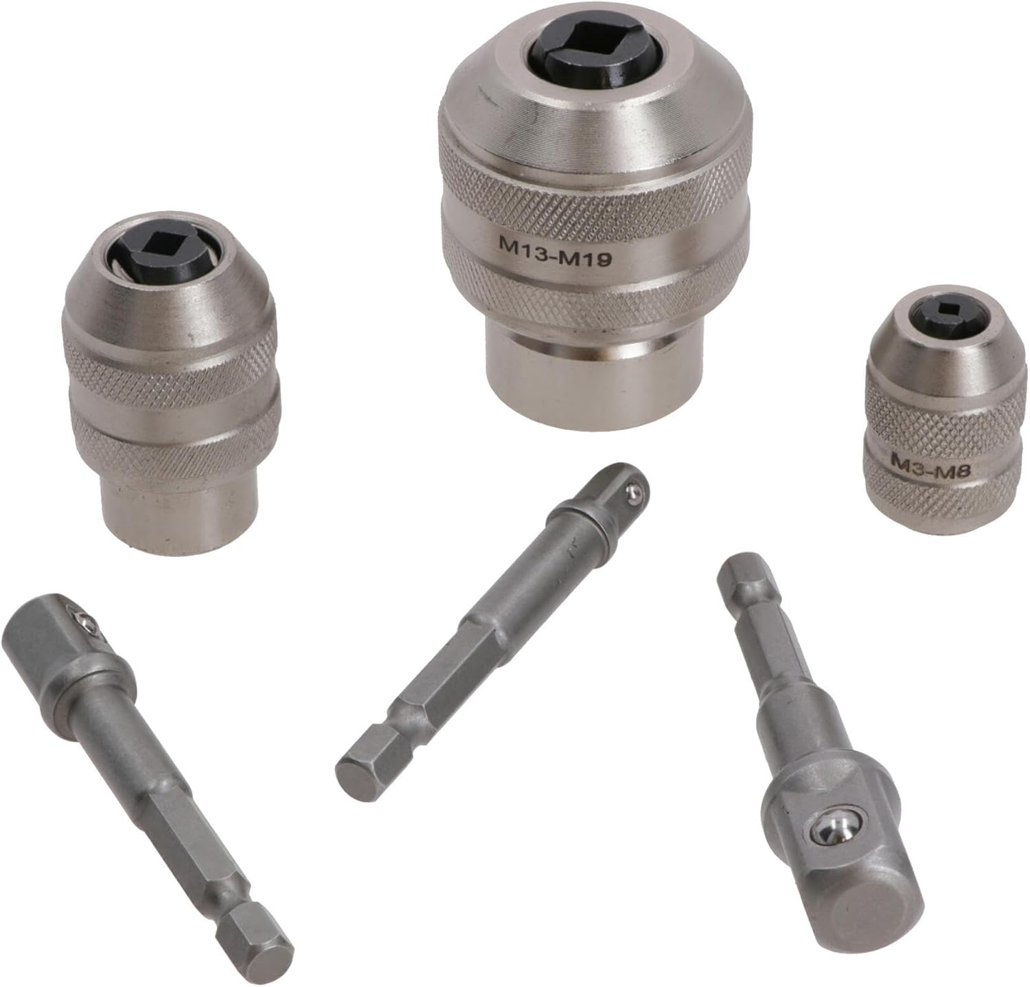 Professional adjustable tap sockets for commercial or occasional use Mixed drive adjustable tap socket set Set includes 1/4in, 3/8in and 1/2in drive tap sockets As well as this comes with 3 x 1/4in shank hex adaptors for easy attachment onto drill Suitable for tapping and reaming in tight spaces Fully adjustable design makes it suitable for other tools with a square shank such as reamers and screw extractors Comes with 3 different sized square drive adaptors so that as well as being used on a normal ratchet the tap sockets can also be used on a socket driver or impact drill Knurled ring helps to tighten taps securely Manufactured from CR-Mo steel for maximum strength and durability For accurate results each time Ideal in areas with tight restricted spaces Suitable for taps varying from 3mm – 19mm As well as this also suitable for imperial sized taps as well Fully adjustable jaws Easily change and attach dies SET INCLUDES THE FOLLOWING 1 x 1/4in Drive Tap Socket for M3 – M8 taps 1 x 1/4in Drive Tap Socket for M5 – M12 taps 1 x 1/4in Drive Tap Socket for M13 – M19 taps 1 x 1/4in hex drive to 1/4in square drive adaptor 1 x 1/4in hex drive to 3/8in square drive adaptor 1 x 1/4in hex drive to 1/2in square drive adaptor Comes in a blow molded case for easy storage and transportation