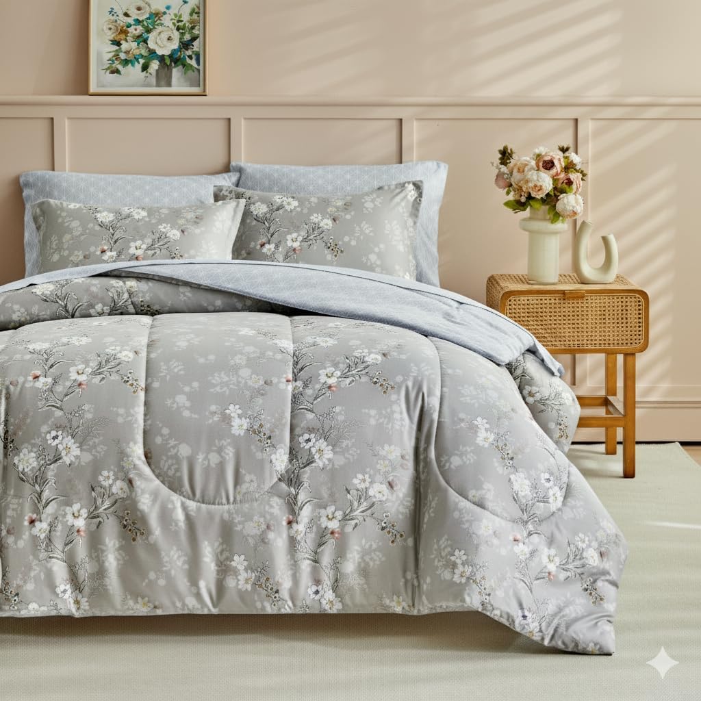 This AIKASY comforter set features a soothing beige leaf pattern that adds a touch of nature-inspired elegance to your bedroom decor. The soft color palette enhances a relaxing ambiance, perfect for any season.