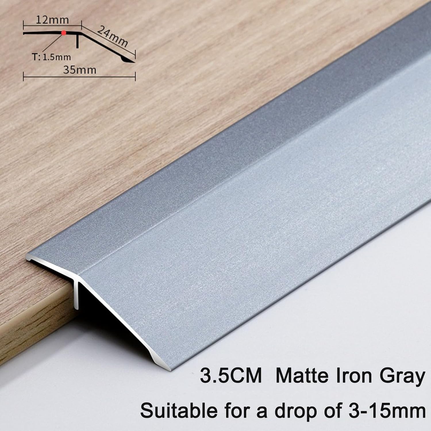 Specifications Brand: Kwweeoo Item: Aluminium Floor Transition Strip Flooring Reducer Color: Matte Iron Gray Installation: Adhesive Glue LED Light Output Direction: Lateral Side Light Material: High-quality 6063-T5 aluminum Process: Anodizing treatment