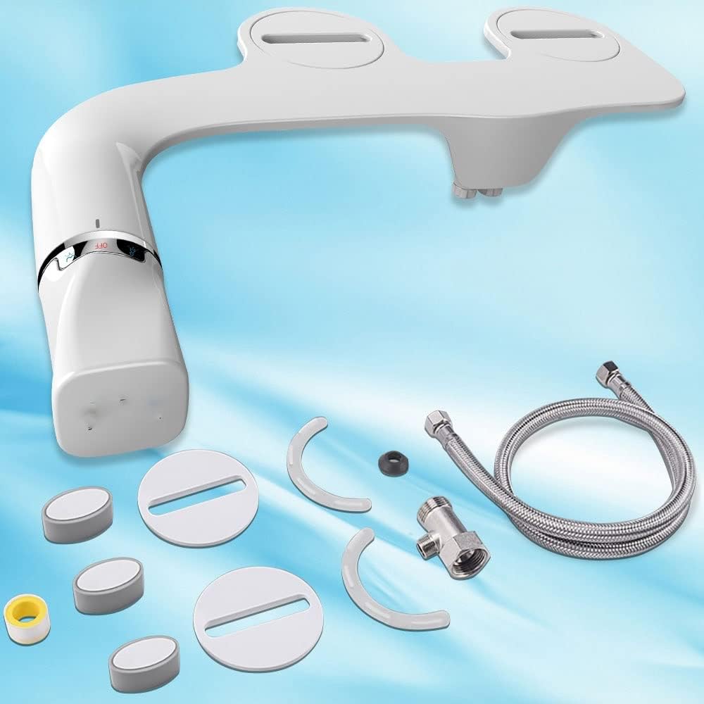 Cold water and hot water with nozzles; no ac power or batteries are neededThe hygienic nozzle guard gate shields the nozzles. The nozzle automatically retracts behind the guard gate after each wash to ensure it is protected until your next use.-Washes with jets of fresh is more hygienic than traditional paper or wet wipes, reduces the amount of toilet paper consumption, it can and save you money.Only drop below the gate when the bidet is turned on. When no water is running to the bidet, the nozzles will remain retracted and under protection behind the nozzle guard gate.With adjustable water pressure control knobs, you can adjust the water pressure according to your own needs. Water stream is right on by adjusting position on the seat it works well cleaning, so that you feel unprecedented clean and fresh.Name:Toilet Seat BidetModel:SS5610Material:ABS+Brass+Stainless SteelBidet:ABSHose:Stainless Steel Hose(75cm) Nozzle:Woman wash, Hip washWater Pressure Adjustment:YesSimply turn the knob to adjust the spray from soft to strong. The soothing water provides a mild and sanitary cleaning experience.