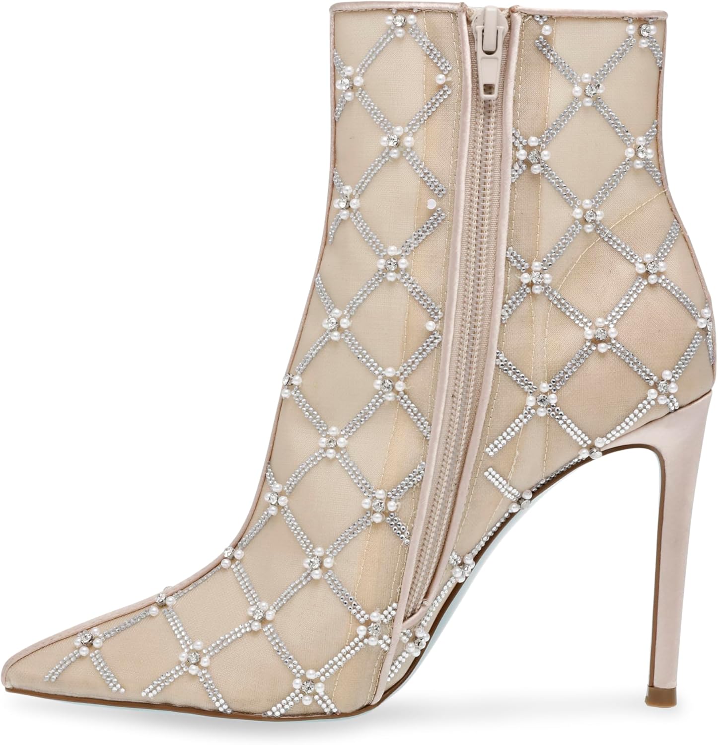 Meet LARKK, the perfect stiletto bootie for fancy occasions. Adorned with mesh textile with hand-sewn pearl rhinestone lattice patterns, these dress booties add a touch of glamour to any outfit.
