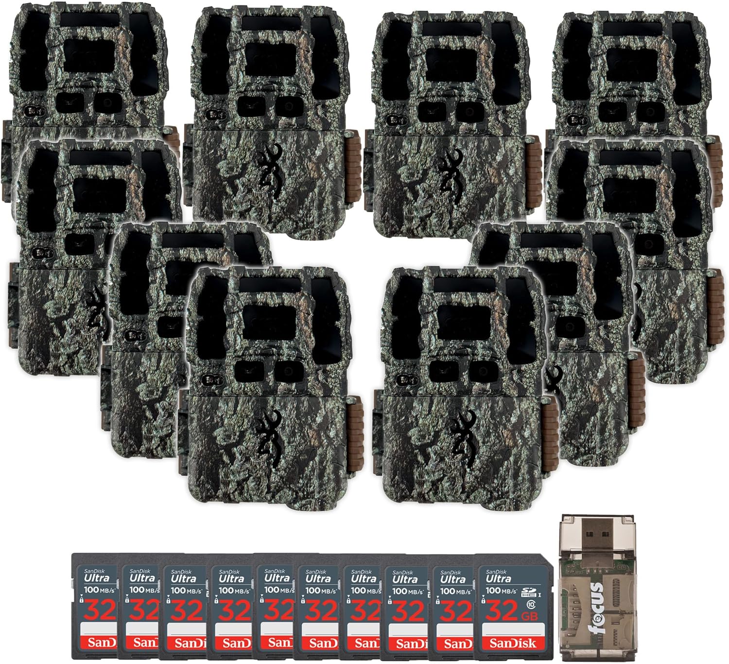 Browning Trail Cameras Dark Ops Pro DCL Nano with Dual Camera Lens Technology and 4K Video QualityThe updated Browning Trail Cameras Dark Ops Pro DCL Nano has a new, more compact housing and the most robust feature set in the Dark Ops camera series. These cameras feature a high-performance Invisible Infrared Illumination System to increase picture quality and range at night like never before, and wildlife or trespassers on your property cannot detect the camera while capturing images and videos. The Dark Ops Pro DCL Nano also features ‘Dual Camera Lens Technology’. This feature incorporates a custom-tuned daytime camera lens to produce razor-sharp daytime images, while the dedicated night camera lens takes incredibly clear nighttime photos. This camera packs all the performance you expect with 26 MP picture quality, 4K video with sound, lightning-fast 0.15-second trigger speeds, and superior battery life. Additional features include SD Card Management options and Smart IR video to keep recording the game during the daytime as long as it’s in motion. The Dark Ops Pro DCL Nano is compatible with up to 512GB SD cards and delivers the best battery life on the market. The Browning Trail Camera Dark Ops Pro DCLN is equipped with a 100 feet flash range and an adjustable flash range (power save, long range). It features a 0.15-second trigger speed and a 0.35-second picture recovery time. The Illuma-Smart Technology automatically adjusts the IR flash for perfect night photos.Bundle Includes:2 x Browning Trail Cameras Dark Ops Pro DCL Nano with Dual Camera Lens Technology and 4K Video Quality2 x 32GB Ultra SDHC UHS-I Memory Card (100MB/s)All-In-One High Speed Card Reader