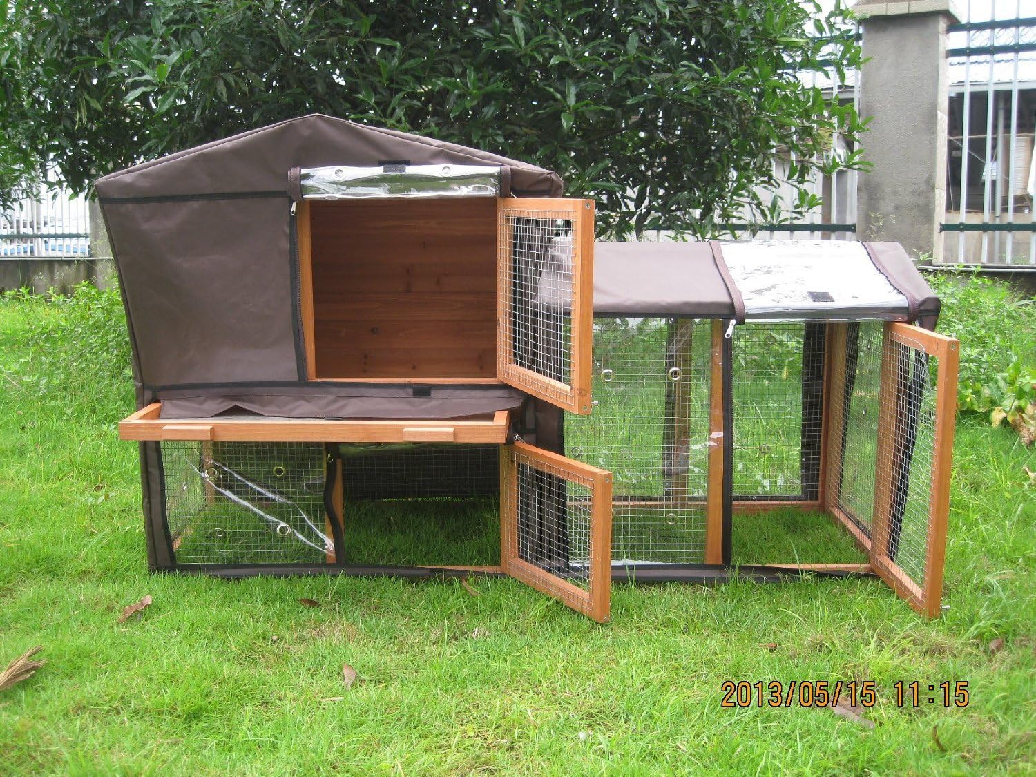 Product Description The rabbit hutch will be completely covered up by this insulating and water-repellent protective cover. That way rabbits are protected against rain, wind and low temperature, so that they feel themselves snug like being in a cave. Fits the Grove 147cm Length x 53cm x Depth : 85cm x Height Set Contains: HUTCH COVER