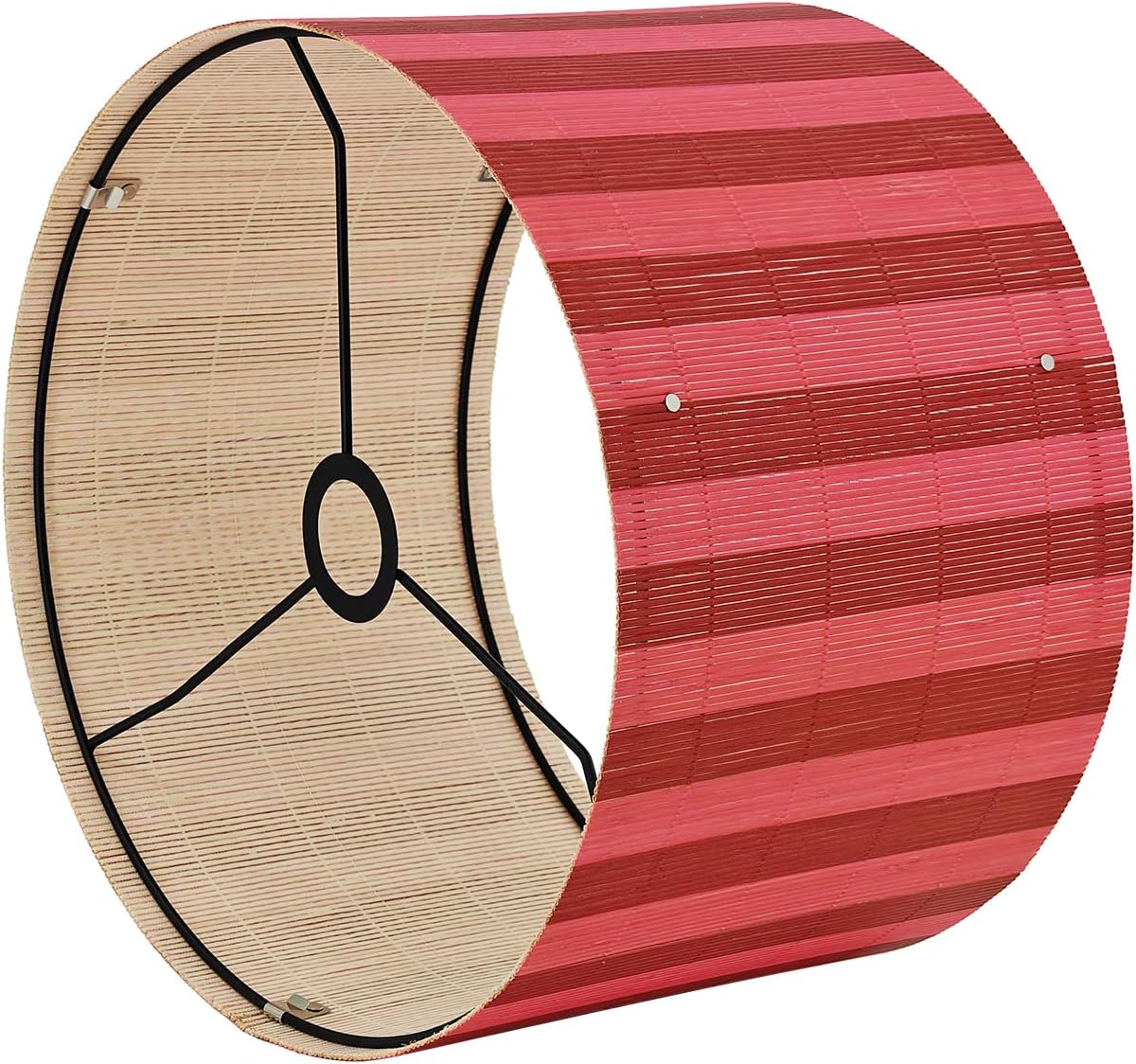 This striking drum lampshade brings a contemporary aesthetic to your home lighting with its distinctive deep red stripe pattern. The cylindrical design features a semi-transparent construction that creates beautiful ambient lighting effects when illuminated, casting warm, filtered light throughout your space. The bucket-shaped silhouette offers a modern and simple style that complements various interior design schemes, from minimalist to eclectic. Specially designed for chandelier applications, this lampshade transforms ordinary fixtures into eye-catching focal points. The vertical stripe pattern adds visual interest and texture, creating dynamic shadows and depth when the light is on. Perfect for enhancing the atmosphere in living rooms, bedrooms, and study rooms, this versatile lampshade serves as both a functional lighting component and an attractive decorative element. The installation process is straightforward, with the shade designed to fit standard chandelier frames. Whether you're updating an existing fixture or completing a new lighting installation, this lampshade offers an effortless way to refresh your home decor. Its neutral beige interior lining ensures optimal light diffusion while the bold exterior pattern makes a confident style statement.