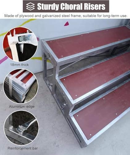 Choir Risers Folding Choral Stairs Stage Riser Platform Based Metal Anti-Slip Portable Stage Platform Multi-Leve,Elevate your ensemble's performance with our premium choir steps, designed to provide stable support for groups of all sizes. Whether you're rehearsing for a concert, participating in a school event, or organizing a community gathering, these choir risers enhance your presentation while prioritizing safety and reliability. Crafted from durable plywood and galvanized steel, our choir steps are built for longevity and consistent use. Available in one, two, or three tiers, each riser accommodates up to three individuals per tier, making them perfect for choirs, bands, and theatrical performances. With an impressive weight capacity of 500kg (1102 lbs) per tier, you can trust that our risers will securely support your performers. The dimensions are convenient for any venue: the single tier measures 128 x 30 x 20cm (50 3/8" x 11 3/4" x 7 7/8"), while the three-tier model expands to 128 x 90 x 60cm (50 3/8" x 35 3/8" x 23 5/8"). Their compact design allows for easy setup and transport, ensuring a seamless transition from storage to stage. Each package includes one choral riser, allowing you to expand your setup as your group grows. Invest in our choir steps and experience the perfect blend of quality and functionality. Enhance your ensemble's visibility and confidence on stage, ensuring that every performance resonates with style and grace. Transform your next event with our reliable choir risers.