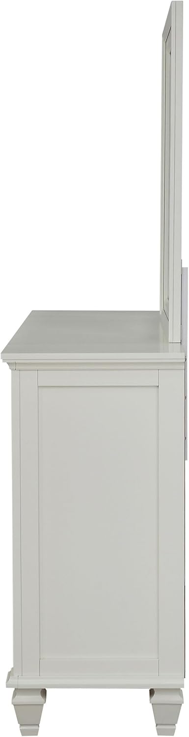 Elevate your bedroom’s style and functionality with this elegant dresser and mirror set. The dresser offers two wood-framed tempered glass doors and an abundance of storage with 11 spacious drawers, including felt-lined top drawers for your delicate items. Paired with the dresser is a beautifully framed mirror, designed to enhance the sense of space and light in your room. Finished in a neutral color and constructed from solid hardwood and engineered wood, this set combines timeless design with modern functionality. Brushed nickel hardware adds a touch of sophistication, making this dresser and mirror set a refined and practical centerpiece for any bedroom.