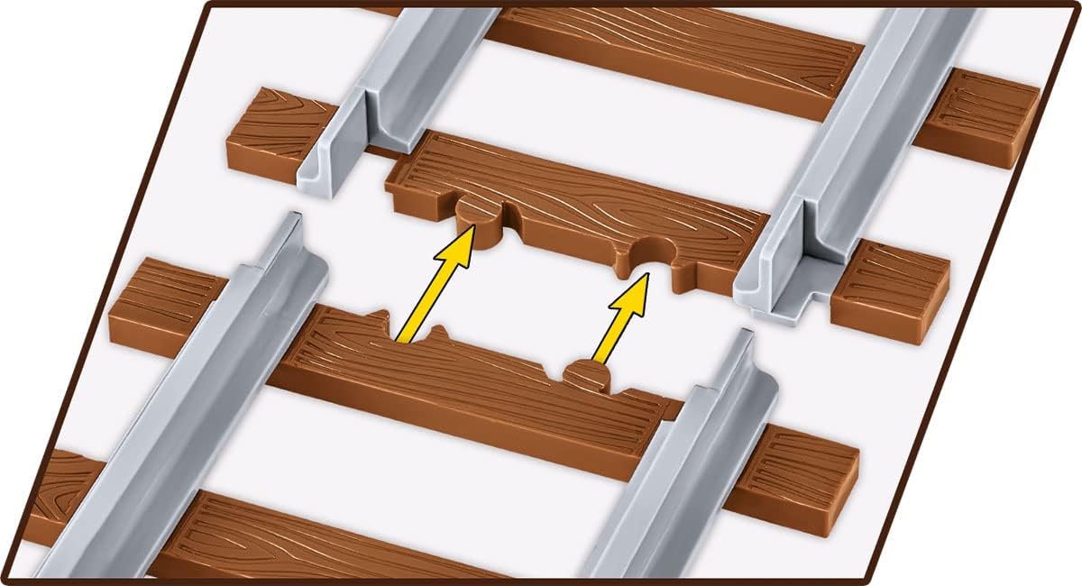 Designed to carry vehicles and loads weighing up to 50 tons, the German four-axle German railway platform has been carefully developed in a 1:35 scale model to match the rest of the 20th Century railway and vehicle collection. It is ideal for transporting tanks and vehicles from the Second World War, which are also in the COBI collection. In addition to rolling wheels and detailed prints, an attractive addition to this model is a figure of a German railway guard with a miniature lamp. The wagon can also be attached to locomotives from the new COBI Railway Collection. The set includes three sections of a straight track with a length of 39cm. The track is made with the modern technology of two-color injection, which makes each single section (about 13cm long) a single element made of two different colors of plastic that are joined together! The gray steel rails clearly stand out from the very realistic railway ties in brown with a wood texture! There are no visible pegs (studs) on each tie, which significantly improves their realism. Tracks can be attached to structural block plates and have an additional hole, with which you can permanently attach the track to any display using a screw or nail. This set is the perfect gift for any history and railway enthusiast. Build history, piece by piece, with COBI!