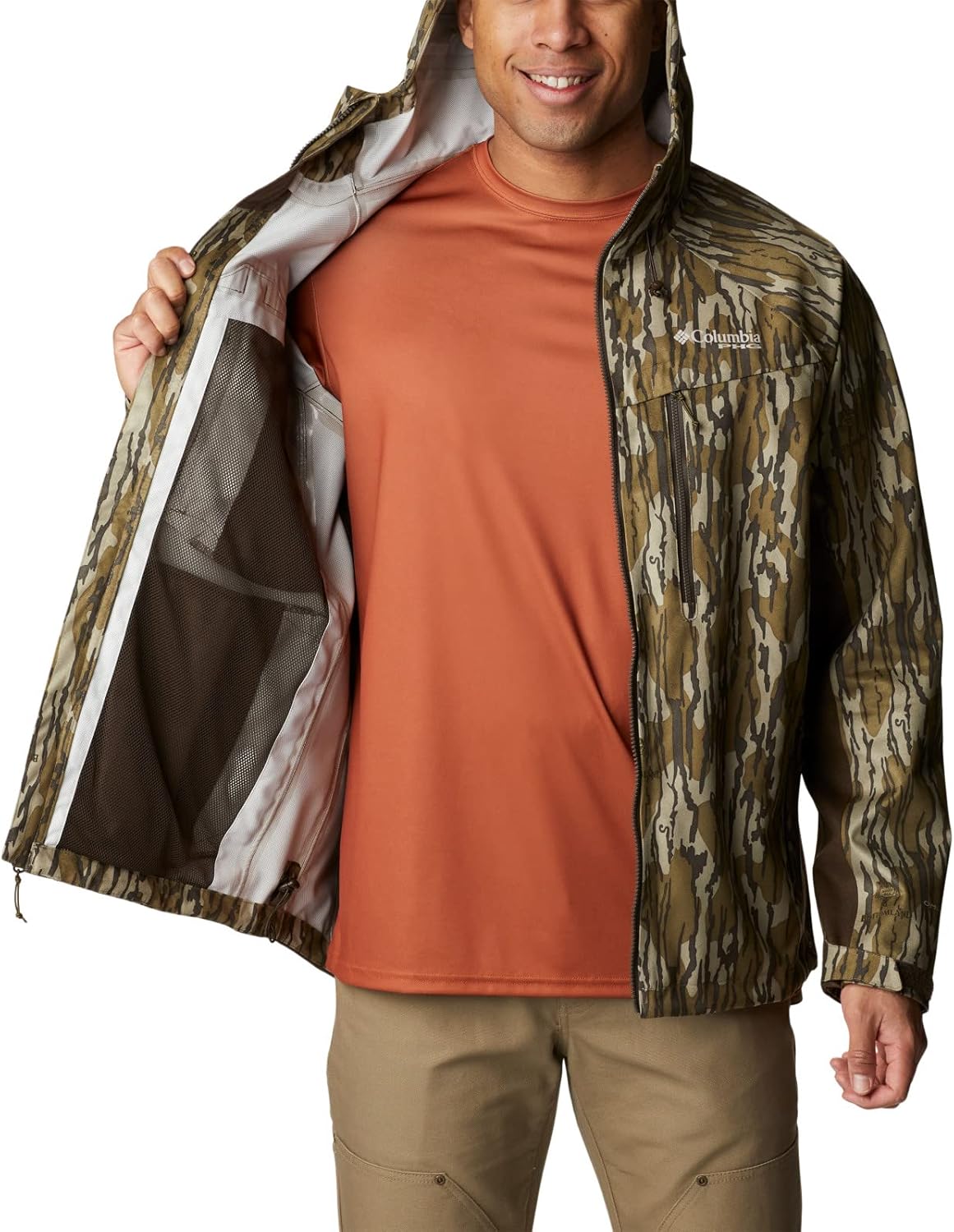Made to perform and protect when the hunt is on, this jacket is waterproof, breathable, and fully seam sealed against the rain. Plus, it has a host of smart features, like an adjustable hood, hem, and cuffs, Interchange and tree harness compatability, underarm vents, and plenty of pockets. Columbia offers this jacket in multiple colors and sizes. Regular fit.