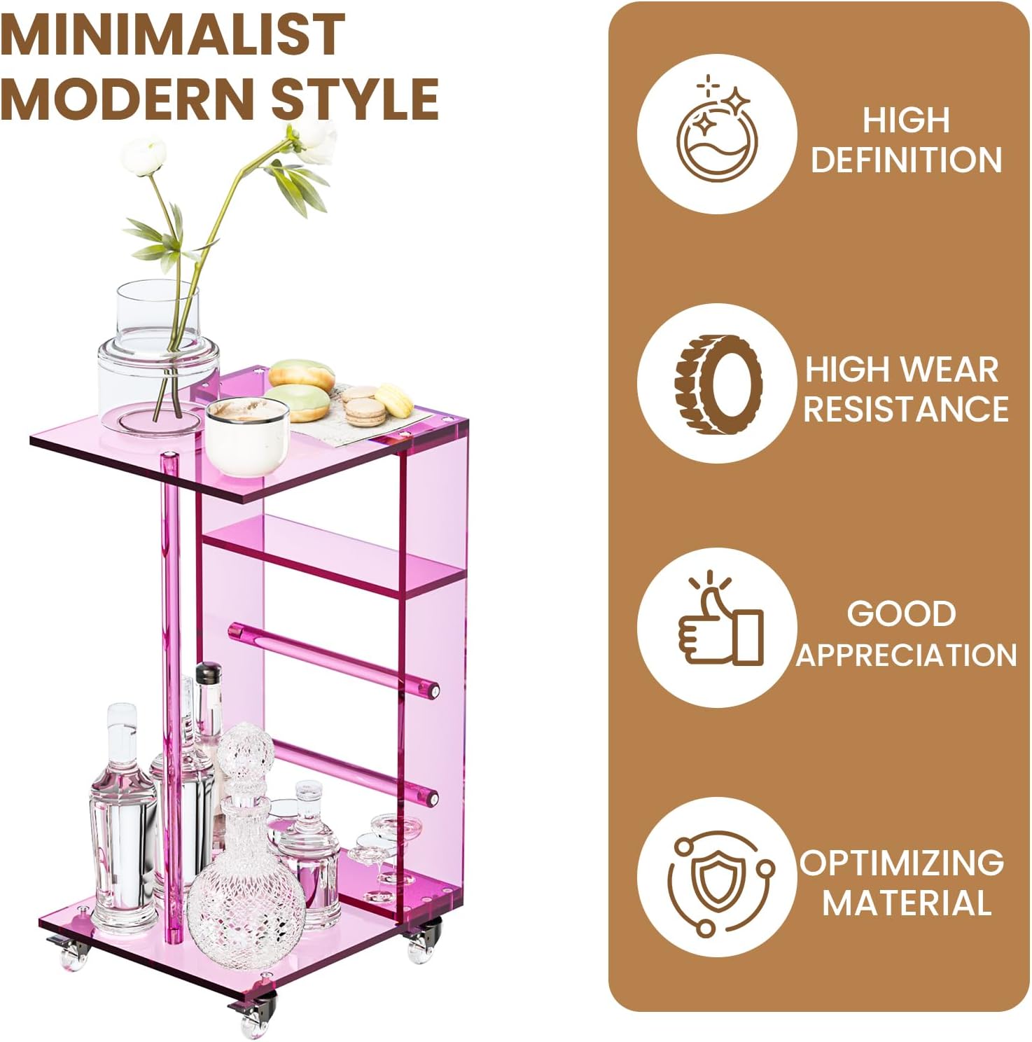 Dethan Clear Acrylic C Shaped Side Table with Wheels – Small Modern End Table, Rolling Coffee Snack Table for Living Room, Bedroom, Sofa, Bedside, Pink Dethan Mesa Auxiliar Acrílica Transparente en Forma de C con Ruedas – Mesa Pequeña Rosa Moderna, Mesa de Café o de Aperitivos Rodante para Sofá, Cama o Sala