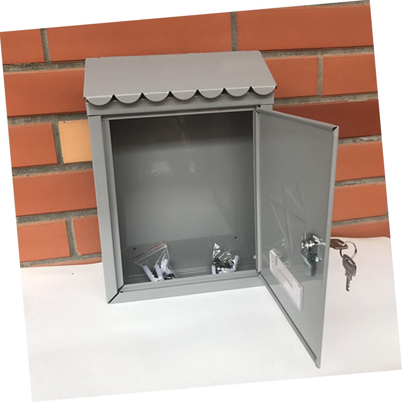 Package List 1 x Wall Mailbox Features -Material:Tinplate locked mailbox -Product Info:European mailbox -Color:Silver mailbox with lock for outside -Size:30.00X21.70X7.00cm/11.79X8.53X2.75in mailbox outside - The vintage style mailbox can bring a new aspect of outlook to your home, office, or garden mailbox lock. - Suitable capacity for envelopes and mails, the practical mailbox can meet your needs for daily correspondence mailboxes house. - The wall mounted mailbox is well polished, no burrs and does not hurt hands when used mailboxes with locks. - Made of tinplate material and with fine craftsmanship, our mailbox can be durable and strong small wall mount locking mailbox. - You can install this metal mailbox on the wall or just place as you wish according to your needs locking mailboxes.Goods Descriptionmailbox lock The simple design makes it more unique and stylish.rainproof locking mailbox Suitable capacity for storing envelopes, newspaper, letter of complaint.mailboxes with locks The mailbox is delicate with looking.lockable mailbox The product is well polished, no burrs and does not hurt hands when used