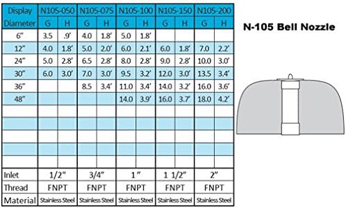 2" Bell Nozzle - Model: N105-200. Nozzle is available in 1/2", 3/4", 1", 1½" and 2" Sizes. Inlet: Female National Pipe Thread. Stainless Steel Construction