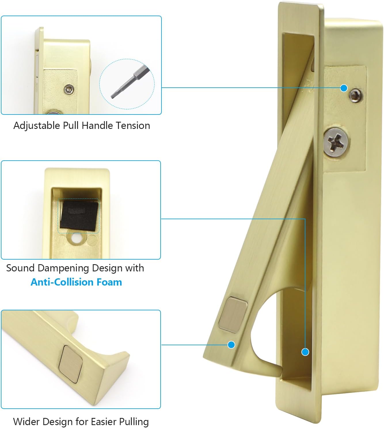 Dontay Pocket Door Privacy Lock with Edge Pull,Invisible Recessed Handle Latch Sliding Doors Lock, for 1 3/8'' to 2 3/16'' Thickness Barn Door Hardware(Privacy Lock,Satin Brass,1 Set)