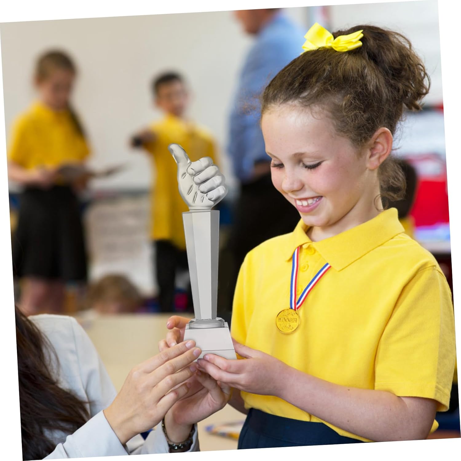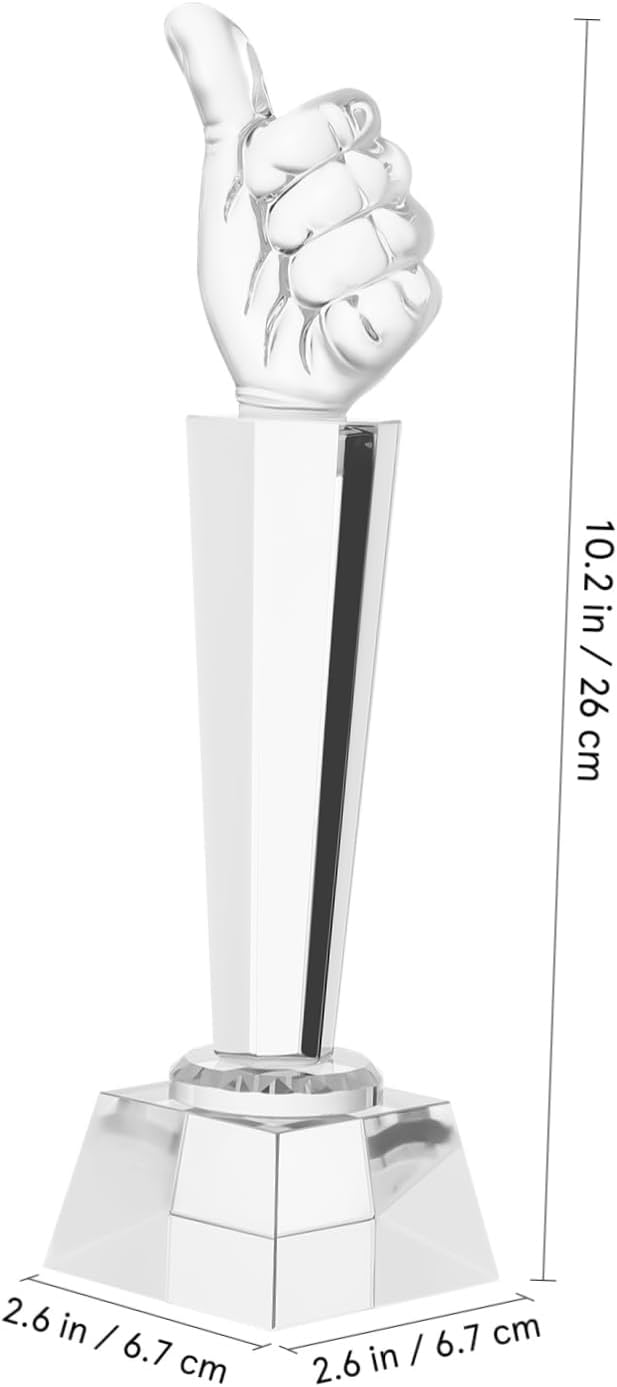 Package List 1 x trophy Features -Material:Glass appreciation award -Size:26.00X6.70X6.70cm/10.22X2.63X2.63in glass trophy small -Sturdy Material: Made from glass, this trophy offers a luxurious look that enhances the significance of any award trophy statues -Lasting Tribute: This trophy serves as a constant reminder of success, encouraging recipients to strive for excellence in their future endeavors hand gesture statues -Color:Transparent party favors -Adaptable Recognition: Whether for a local sports league or a talent competition, this trophy fits seamlessly into various award contexts small trophies -Inspirational Symbol: The trophy is a universal sign of approval, making it a motivational present for winners in any field awards trophies -Striking Aesthetic: The reflective qualities of the glass trophy create a captivating display, drawing attention to the achievements it represents trophy awardGoods Informationaward trophy Ideal for celebrating achievements, this glass award serves as a versatile recognition piece for employees, students, or participants in any event.thumb glass trophy Its compact size makes it easy to display on desks, shelves, or mantels, providing a constant reminder of hard work, dedication, and the value of participation