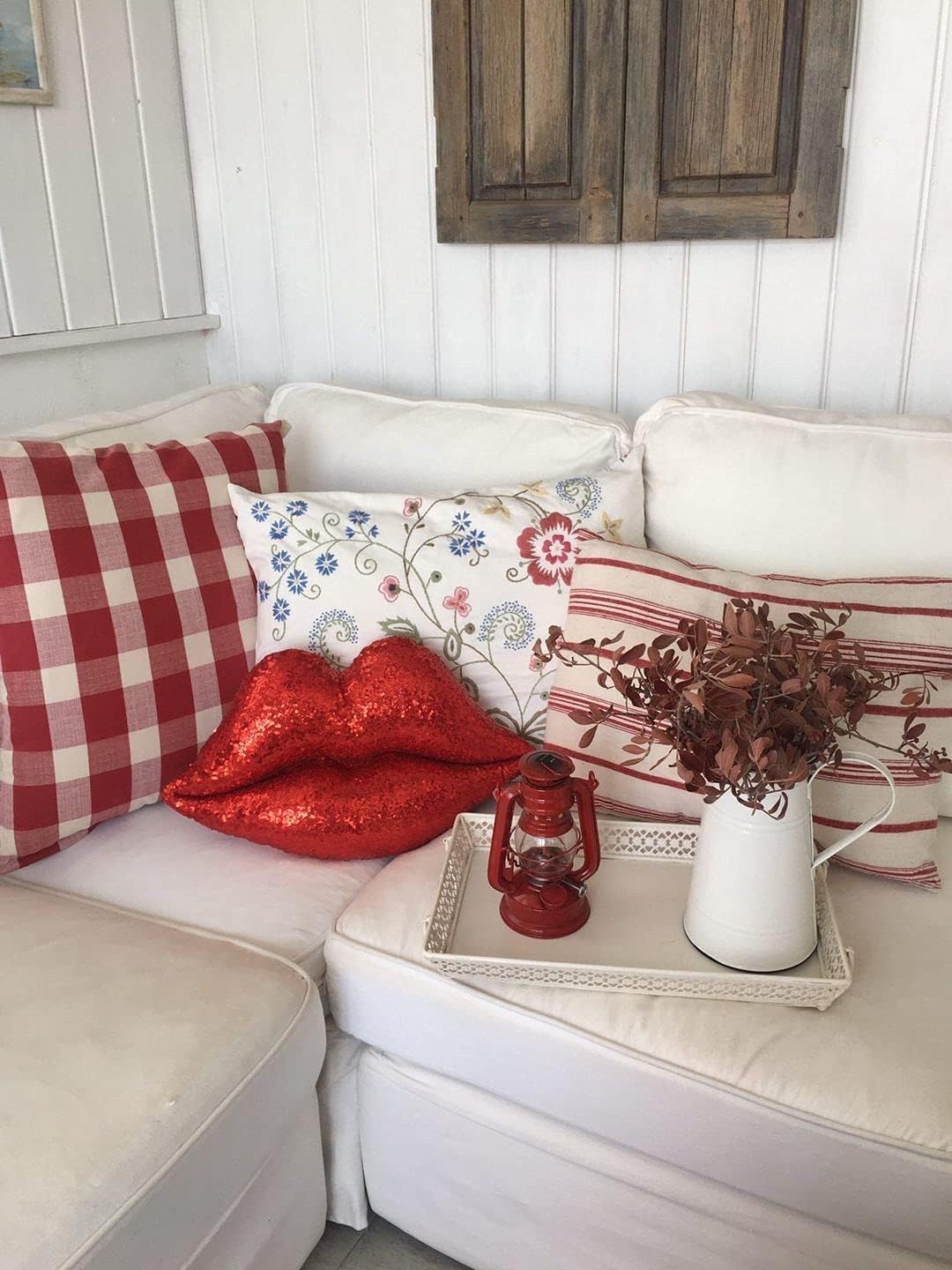 Red Lip Shape glitter double sided pillow,very attractive gift and Home decoration Made of high quality sequin fabric very soft and comfortable What is more it is perfect decorative for your sofa ,car,home ,bed ,shop or any party ,wedding ,christmas or any happy occasions.