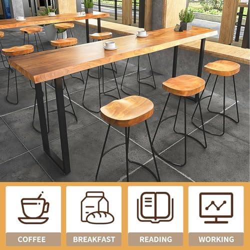 Introducing the Industrial Bar Height Table, a stylish solution for narrow spaces that combines functionality with aesthetic appeal. This elegantly designed rectangular pub table stands at counter height, featuring a live edge finish that enhances the unique character of any dining area. Perfect for a variety of settings, including homes, restaurants, bars, cafes, and kitchens, this versatile table caters to those who appreciate both style and practicality. The narrow design is ideal for small dining areas, allowing you to maximize your space while creating an inviting atmosphere. Crafted with a robust metal tube base and a warm-toned solid wood veneer tabletop, this table is not only a dining solution but also serves beautifully as a rustic sofa console when placed against the back of your sofa. Each tabletop displays a distinct wood grain, ensuring that your table is truly one-of-a-kind. With a thickness of 25mm, the tabletop is engineered for durability, providing a strong load-bearing capacity for your dining needs. The water-based paint finish ensures that the surface is waterproof and scratch-resistant, making it suitable for everyday use. Assembly is easy and straightforward with the included hardware and instructions, allowing you to set it up in no time. Product specifications include a weight range of 20-30kg and dimensions of 140 x 40 x 105 cm (55.1 x 15.7 x 41.3 in). We recommend measuring your space before purchasing to ensure a perfect fit. Elevate your dining experience with the Industrial Bar Height Table, where functionality meets rustic elegance.
