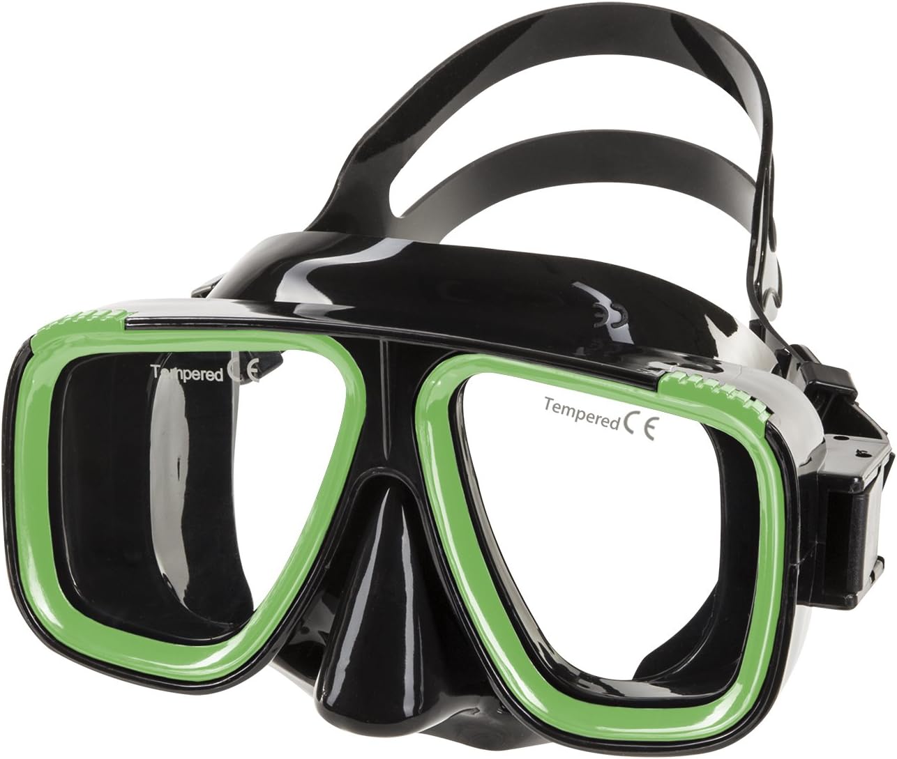 In revolutionary, liquid injected, exclusive hypoallergenic soft silicone, the IST M9 Saturn 2-Window Diving Snorkeling Mask offers extraordinary and unparalleled comfort and fit. This is a heavy duty mask that can stand up to the elements and repeated use, making it a popular choice for use as a rental mask. The Saturn rests securely on your face without binding, and does not leave eye ring impressions even after an extended snorkel or dive. If you’re sick of annoying ring-around-the-eyesocket, Saturn is the mask for you. Saturn’s raked dual tempered lenses with their patented inverted angled tear shape provide an exceptionally wide field of view. The silicone mask strap is wide, to provide an evenly dispersed, snug fit and long-wearing comfort at the back of your head. Especially good for average to wide facial profiles. All the way around, Saturn is a space-age engineered marvel of colorful design that’s ideal for snorkeling or scuba diving.