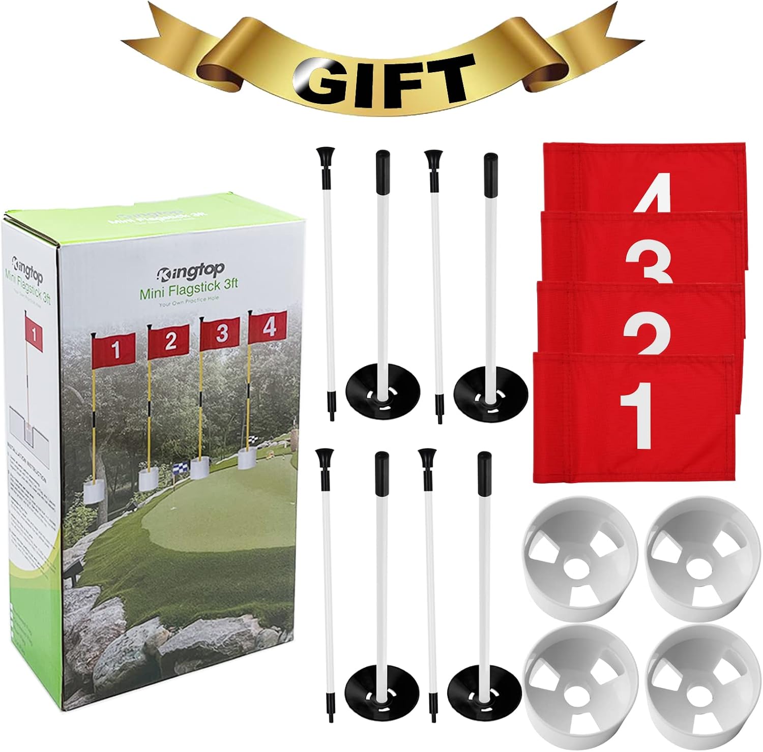 Combo Pack- It comes with 4 mini golf flagstick sets and 4 RGB golf hole lights, lighting up your backyard putting green hole for the whole night, and giving an RGB glow that lasts for 16-18 hours with a simple on-off switch.