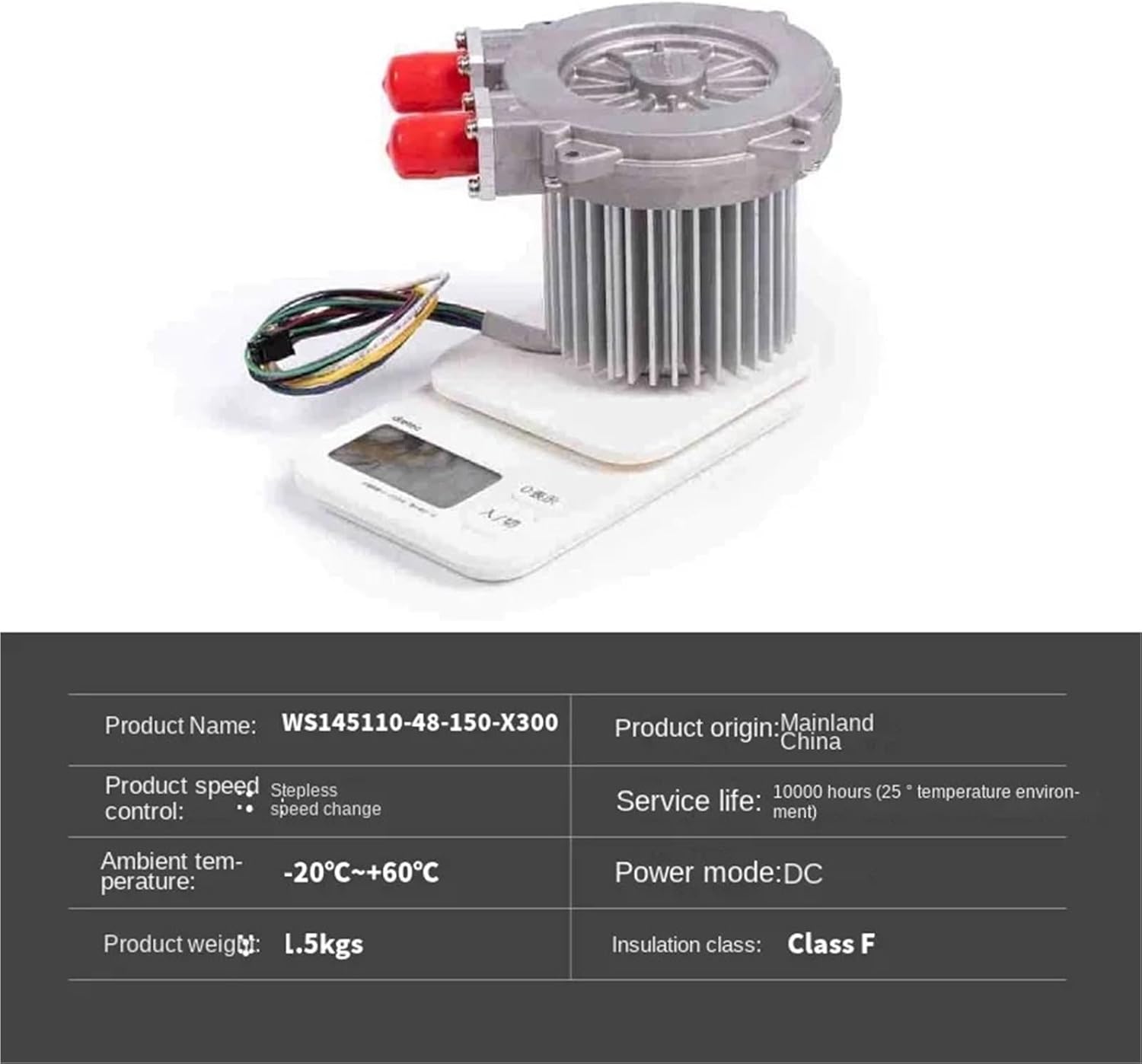 Blower Fans==========Hign-concerned Chemical : noneBlower type : High pressure blowerairflow direction : otherProduct Specifications : WS145110-48-150-X300material : aluminum alloyvoltage : 48noise : 83Fan pressure : High pressure fan