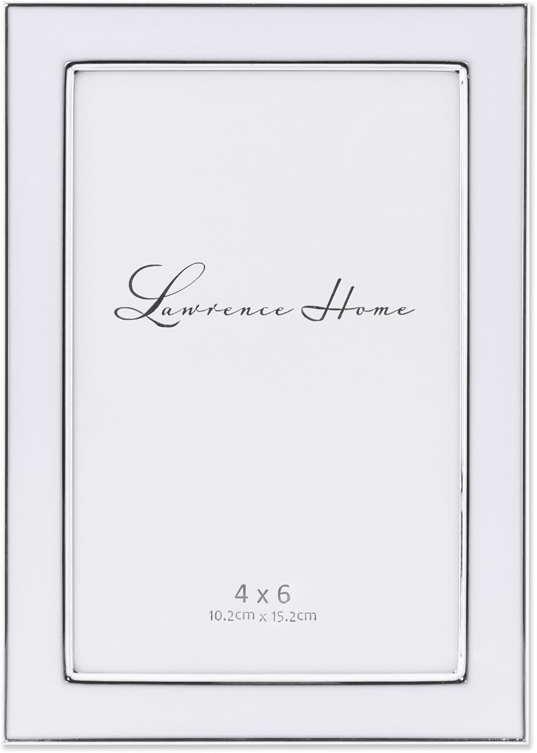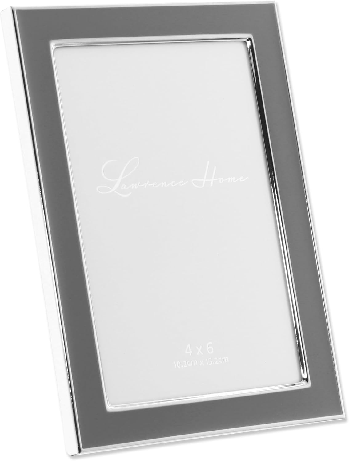 A high quality silver metal frame with polished gray enamel panel. This silver metal and lacquer coated frame has a beautiful lustrous finish. Comes with a high quality black velvet backing with an easel for vertical or horizontal table top display, and hangers for vertical or horizontal wall mounting. Heavy weight metal picture frame is made with exceptional workmanship and comes individually boxed.