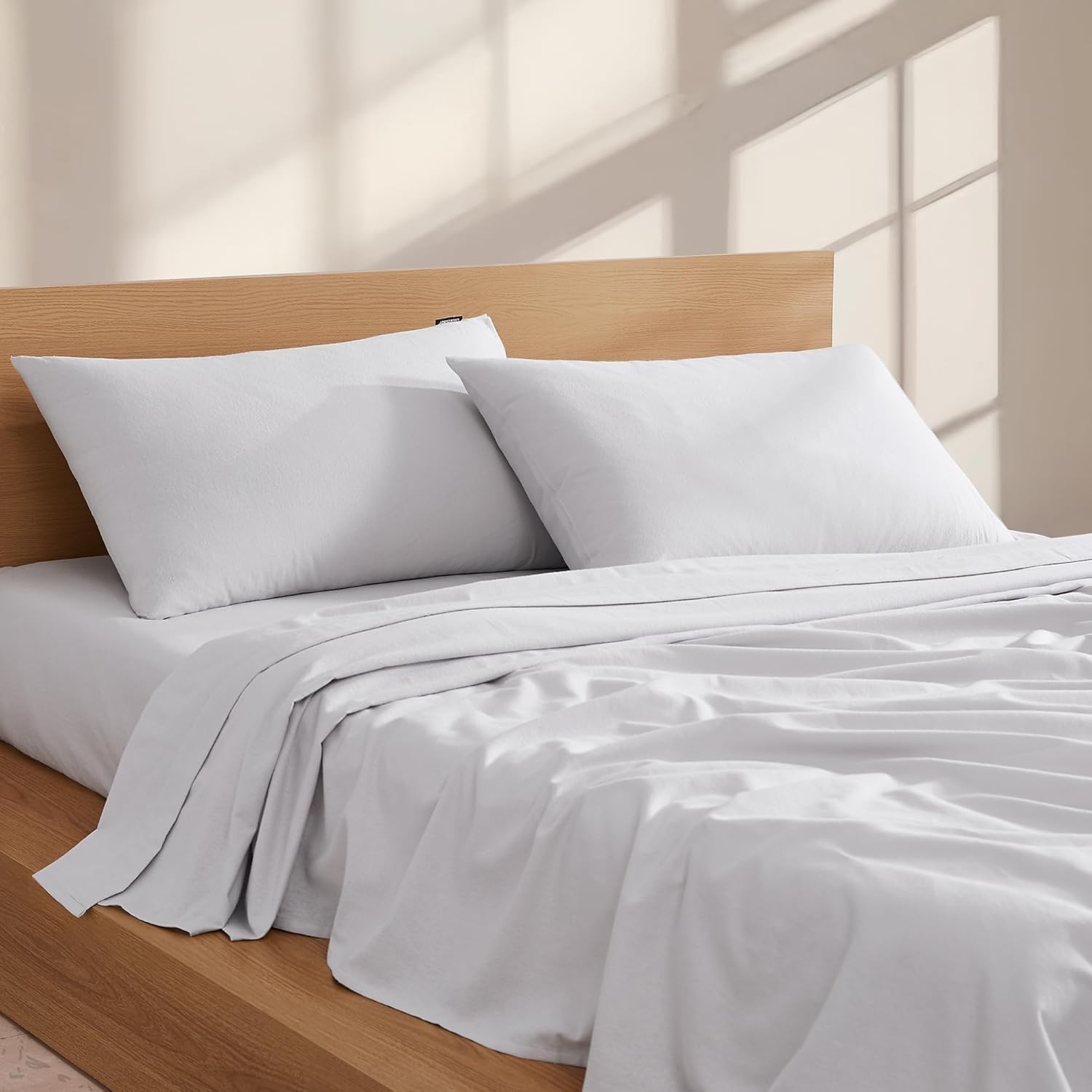 Experience everyday comfort with the Linen Closet 100% Cotton Flannel Sheet Set, thoughtfully designed for cozy and reliable bedding. Made from brushed 100% cotton flannel, these sheets feature a soft finish that provides cozy warmth while remaining breathable, making them suitable for chilly nights. Crafted using premium cotton fibers, the fabric feels naturally gentle on the skin and offers comfortable warmth without feeling heavy.The complete King sheet set includes one flat sheet (108” x 102”), one fitted sheet (78” x 80”), and two king-size pillowcases (40” x 20”), creating a coordinated and polished bedding setup. The fully elasticized fitted sheet is designed to fit mattresses up to 14 inches thick, helping keep the sheet securely in place. A user-friendly “Top or Bottom” tag makes bed-making easier by helping align the fitted sheet correctly every time. Linen Closet Cotton Flannel Sheet Sets are tested under the OEKO-TEX® Standard 100 certification, indicating the fabric has been tested for safety, quality, and comfort. Designed with comfort, functionality, and thoughtful details, this sheet set is a practical addition to any bedroom.
