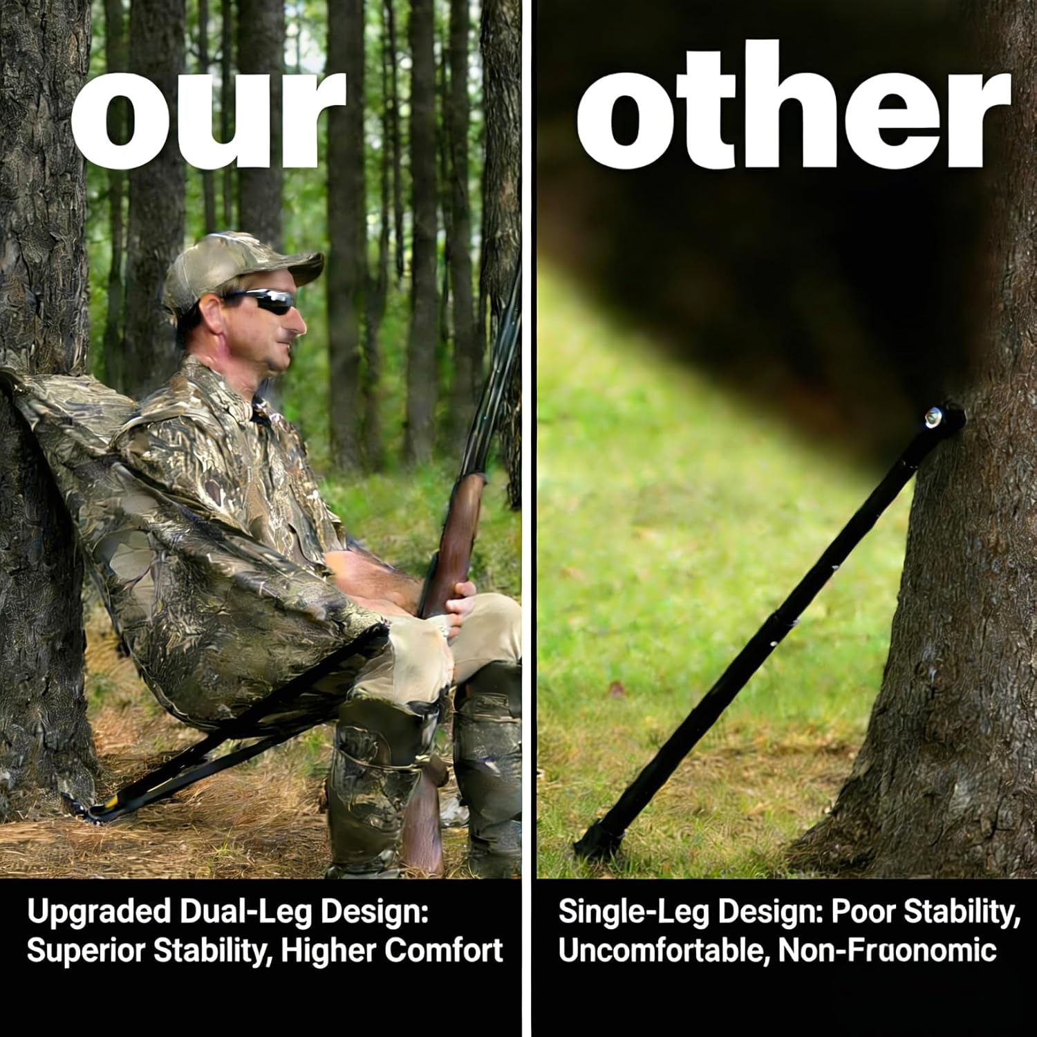 Temaowz low-down tree seat is your ultimate outdoor companion, blending stealth, comfort, and versatility for hunters and campers. This premium Hunting Tree Chair doubles as a ground tree seat and Hammock Tree Seat Hunting Chair, standing out among Hunting Seats for Trees and Ground Hunting Chairs. As a practical alternative to a Clamp On Tree Seat, it features adjustable height, and silent swivel to track prey noiselessly-perfect for deer, turkey, and duck hunts. This Portable Tree Seat folds compactly into backpacks, with a lightweight build that eases long hikes to blinds or stands. This Hunting Chair adapts to every scene: use it as a Tree Hammock Seat for elevated hunts, a Ground Hunting Seat for stealthy blinds, or a camping stool for relaxation. The ergonomic hammock design reduces all-day fatigue, tThe durable frame provides reliable support for long-term hunting use. No tools needed for quick setup! This Tree Stand Chair and Tree Mounted Seat boasts a camo design that blends into woodlands, combining sturdiness with portability. It’s not just a Hunters Tree Seat—it’s essential gear that elevates your outdoor adventures.