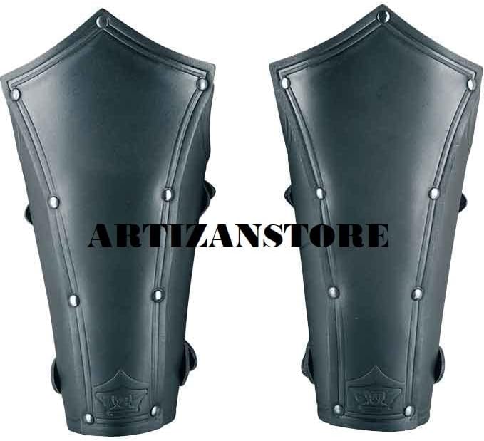 Ancient Rome’s most notorious form of entertainment was the Gladiator Games. People watched armed and highly trained warriors engage in a blood-soaked spectacle equal parts sport, theater, and cold-blooded murder. Not all gladiators were slaves or prisoners of warrior. Many were free men looking to prove themselves. They were similar to our modern day sports icons. They would gain prizes, fame, and women. The Handmade Leather Arena of Death Bracer Set would be much the same as the decorative armor these famed entertainers would have worn. They are constructed of thick high quality leather. They are perfect for a re-enactment costume or if you are engaging in some light training or sparing. The three piece chevron design has been layered adhered together with brass studs. Brass rivets line the sides with a nylon lace so you can adjust to the perfect size for you. Get this stylish set of bracers fit for a warrior so that children may played with your action figures made of clay or hang your portrait on the walls of a public Ancient Rome’s most notorious form of entertainment was the Gladiator Games. People watched armed and highly trained warriors engage in a blood-soaked spectacle equal parts sport, theater, and cold-blooded murder. Not all gladiators were slaves or prisoners of warrior. Many were free men looking to prove themselves. They were similar to our modern day sports icons. They would gain prizes, fame, and women. The Handmade Leather Arena of Death Bracer Set would be much the same as the decorative armor these famed entertainers would have worn. They are constructed of thick high quality leather. They are perfect for a re-enactment costume or if you are engaging in some light training or sparing. The three piece chevron design has been layered adhered together with brass studs. Brass rivets line the sides with a nylon lace so you can adjust to the perfect size for you. Get this stylish set of bracers fit for a warrior so that children may played with .