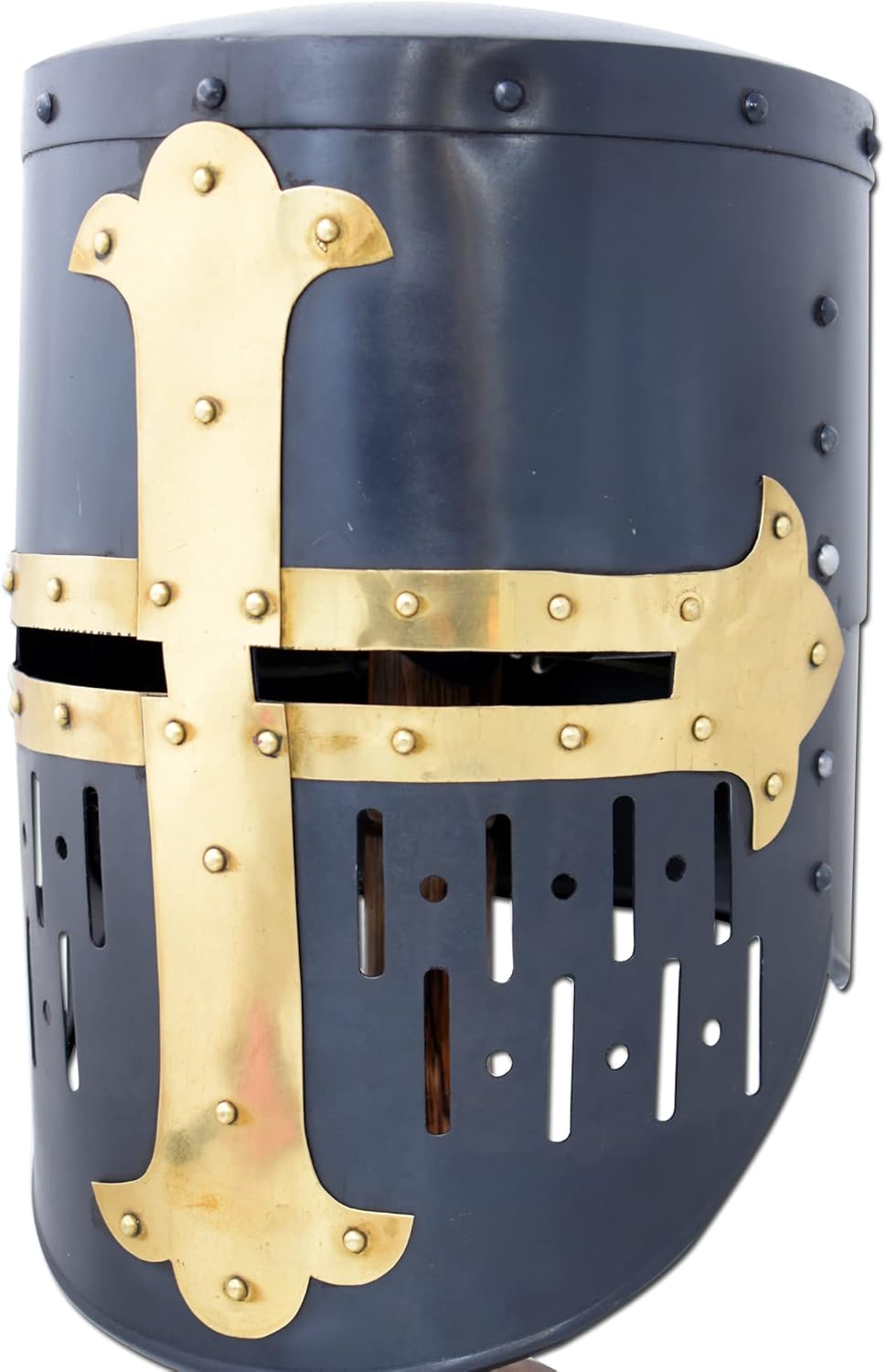 PREMIUM QUALITY KNIGHT MEDIEVAL CRUSADER HELMET A Great part of Crusader Era is this Crusades Helmet . It was an immense part of Crusader Knight Costumes and Outfit in Medieval War Time . So Buy it with confidence and Feel the Fire of a Crusader . PERFECT SIZE & MULTIPLE USAGEThis is a Fully Wearable Handcrafted Crusader Armor Helmet . Made from 18 Gauge mild steel with solid brass accents. Inner diameter front to back 9'inch. Ear to ear 8' inch, inches Height : 13.5 inches, from top to bottom Circumference : 26 inches suitable for every Standard Adult .Can be used it in multi ways like it is Great Gift Idea for Halloween Party, Perfect and Unique Birthday Gifts for your Boy Friend , Husband or Father and Brothers . Best for Party METAL CRUSADERS HELMET WITH FITTED LEATHER LINER AND CHIN STRAPSOur Metal Crusades Helmets comes with Fitted Flux Leather Liner & Adjustable Chinstrap which provides Great Comfort to our Crusaders Knights in LARP Re-enactment Renaissance Party and Cosplay ONE CRUSADER HELMET MANY NAMESThis Metal Helmet is called by many names in this era like Dark Crusader Helmet , Holy Crusader Helmet , Steel Combat Crusader Helmet , Templar Knight Crusader Helmet