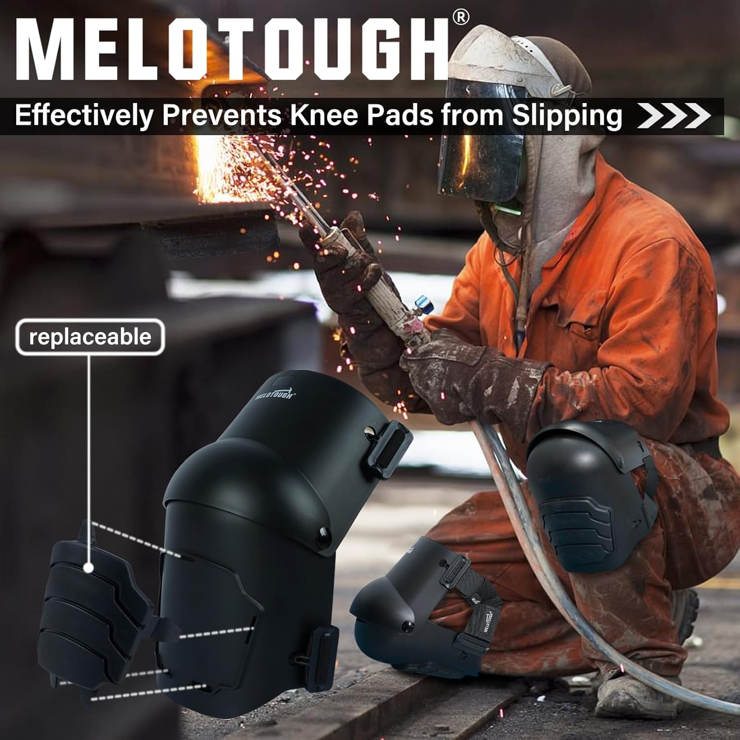 MELOTOUGH Knee Pads for Work,Construction,Flooring,Gardening-Comfortable and Flexible(BLACK) + MELOTOUGH Quick Release Tool Belt 1.5 Inch Web Work Tool Belt with Heavy Duty Metal Buckle for Tool Pouch, Construction, Electrical (Black)