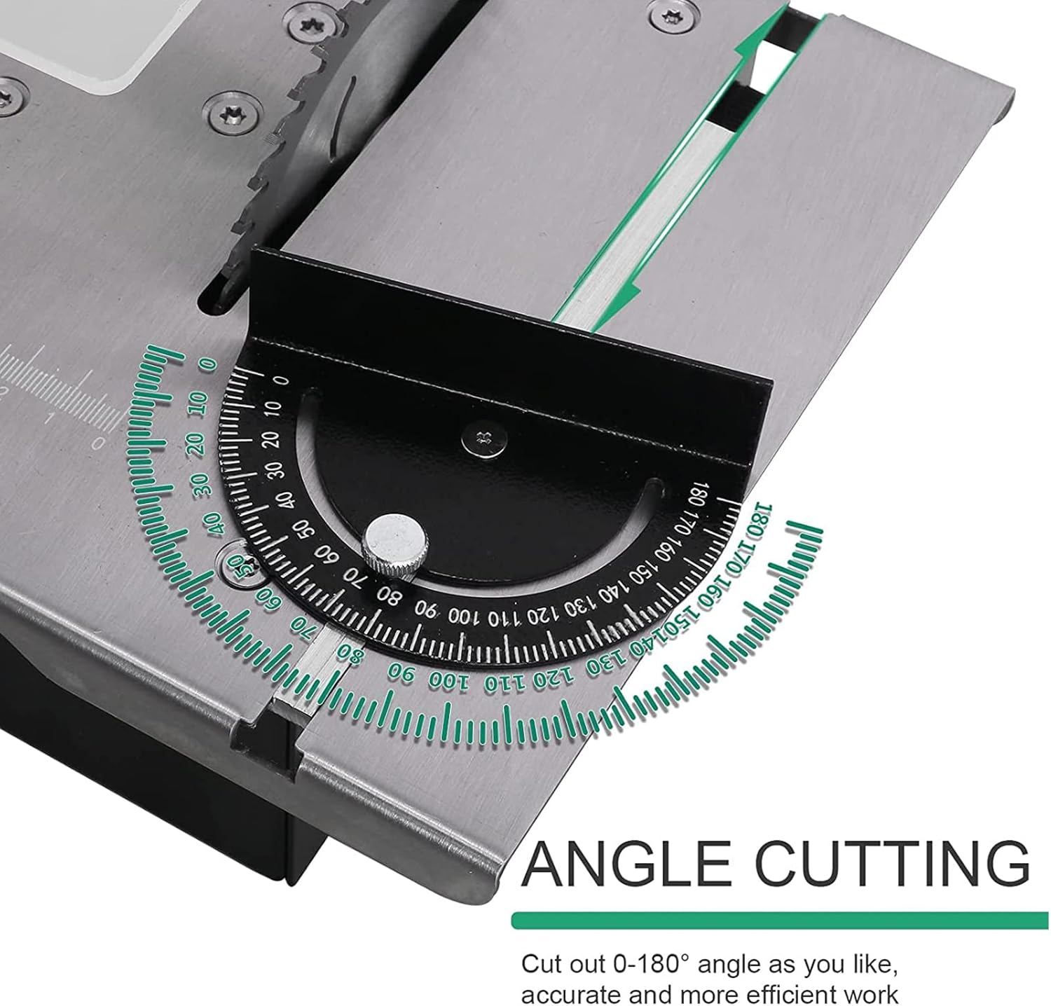 -Product Description Have you ever dreamt of having a handy multifunctional mini table saw with small size, low noise and fast cutting speed? Our mini table saw bring your hope to the reality AND meet your DIY crafts demands. Features: Equipped with table grinding function, support corotation and reverse, one button to adjustable the rotation way, corotation for cutting use, reverse for grinding use. Precise scale ruler design, 0-90° operation angle adjustable, laser engraving degree scale, wear-resistant and not easy to fade. The adjustable transparent acrylic guard, 20-140mm adjustable distance, can prevents touching the sawblade by mistake and will not block your sight. The position of mounting-bracket is 0-150mm adjustable distance. And max cutting depth of the cutting sawblade is 40mm. After installing drill chuck(select set 3), you can install sandpaper, buffing wheel, sponge wheel, trimmer for grinding use. After installing flexible shaft(select set 4), it can be used to grave, drill hole and polish. Specifications: ◆Material: Metal Rated voltage: DC12-24V Rated rotation speed: 2000-12000r/minAcceptive awblade diameter: 110mm, bore=16mm/20mm Max cutting depth: 40mm/1.57in Item size: 280*200*150mm/11.02*7.87*5.91in Item weight: 2700g/5.95lb Note: Please allow 1-3cm error due to manual measurement. pls make sure you do not mind before you bid. Due to the difference between different monitors, the picture may not reflect the actual color of the item. Thank you!