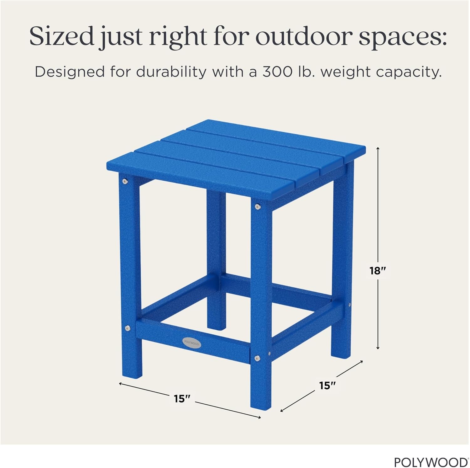 Make outdoor entertaining a breeze with the Long Island 18" Side Table. This all-weather accent piece pulls a space together with its attractive design that features a spacious full-slat tabletop. Ready to rise to any occasion, this multi-talented table can hold drinks, house a wireless speaker, or set the stage for a decorative display. It's crafted of genuine POLYWOOD lumber that's made with sustainable materials, including landfill- and ocean-bound plastics. The result? Long-lasting, feel-good patio furniture for small spaces that's made with future generations in mind.