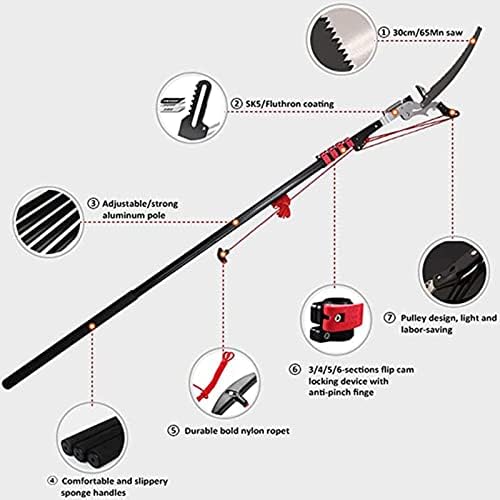 Why choose our telescopic pole saws? Our telescopic pole saw is expertly designed for effortless branch trimming and leaf maintenance, making it an essential gardening tool. Constructed with a lightweight aluminum alloy pole and a durable SK5 saw blade, this tool allows you to reach branches in elevated positions without the need for a ladder, ensuring your safety while you work. With a retractable length of up to 24FT (7.2M), this pole saw is perfect for tackling those hard-to-reach areas in your garden. The innovative design allows you to cut and maintain woody plants from a stable position on the ground, reducing the risk of falls and injuries. Enjoy the convenience of trimming branches while standing firmly and safely on the ground. Our telescopic pole saw also features a comfortable soft foam grip, providing you with maximum control and comfort during use. Its foldable design makes it easy to store, ensuring that you can keep your garden tools organized and ready for action whenever you need them. Whether you are a seasoned gardener or just starting, our telescopic pole saw is the ideal solution for all your pruning needs. With just a little practice, you'll be able to use this high-quality tool effectively in any gardening scenario, from light maintenance to more extensive landscaping projects. We are committed to providing you with the best customer experience. If you have any questions about our telescopic pole saw or need assistance, please do not hesitate to reach out. We are here to help and will respond within 24 hours, ensuring your satisfaction with your purchase. Elevate your gardening experience with our reliable and efficient telescopic pole saw today!