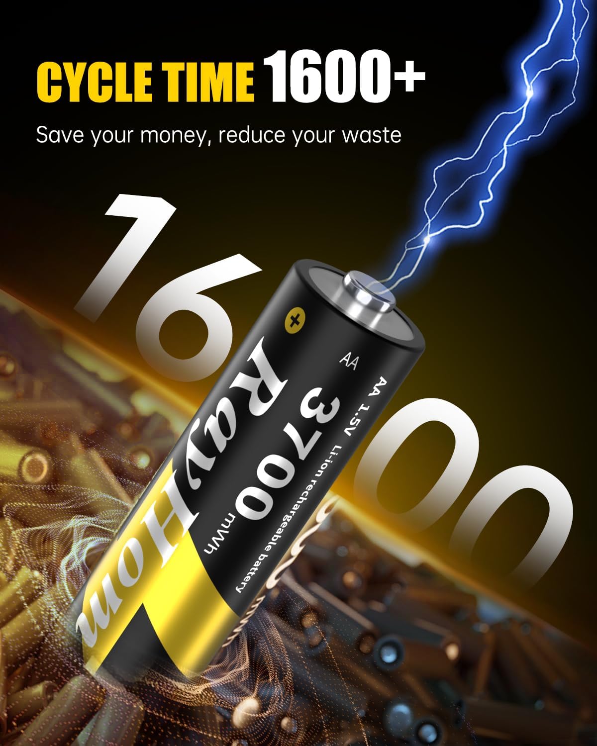 Rechargeable AA Lithium Batteries with Charger-24Pack Double A Batteries for Blink Camera, 1.5V Constant Output 3700mWh High Capacity, Cycle Times Up to 1600, with 12 Slot aa Li-Ion Battery Charger
