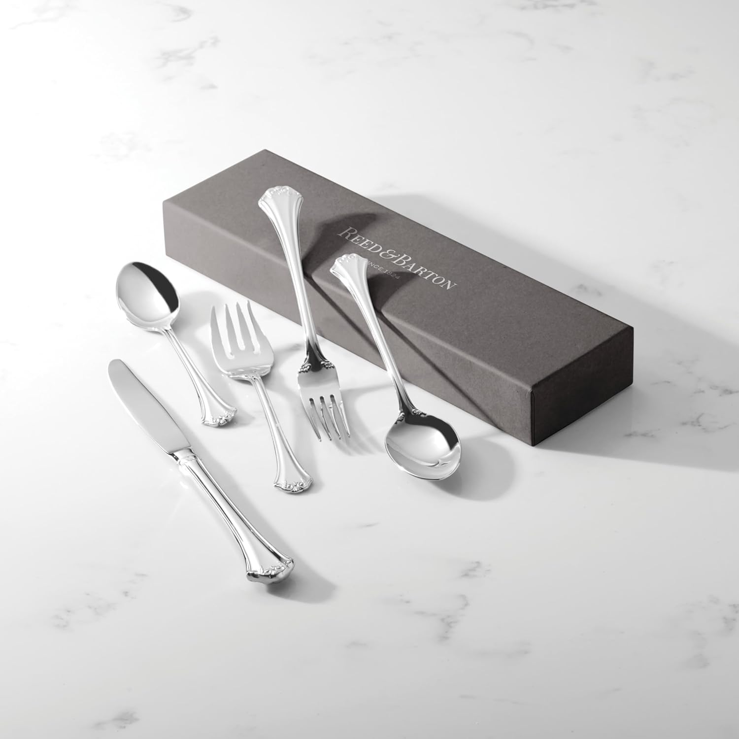 | Included Components | One Place Fork, One Place Knife, One Place Spoon, One Salad Fork, One Teaspoon, Reed & Barton Kraft Gift Box |