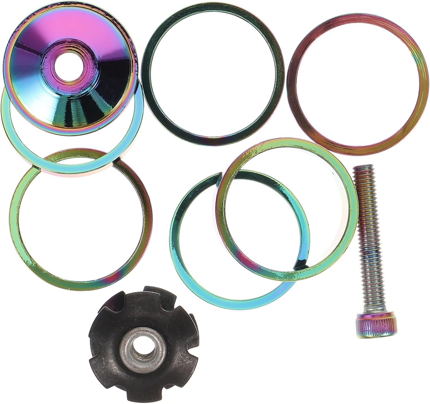 Package Include 6 x Spacers 1 x Screw 1 x Hanging Core 1 x Cap Features -Material:Aluminum alloy sturdy headset spacer -Color:Assorted Color professional headset gasket -Size:3.40X3.40X1.00cm/1.34X1.34X0.39in small washer spacer -Easy to install, not easy to deform, can adjust your grip, and it is suitable for most bikes replaceable headset spacer. -With their sleek and modern design, these spacers can also add a touch of style to your bike, making it stand out from the crowd bike washer spacer. -Manufactured with sturdy aluminum alloy material, which can withstand for a long time road bike headset gasket. -With the fine and great workmanship, it can ensure its durability and practicality aluminum alloy stem spacer. -Light weight, strength and well temperature resistance, impact resistance stem spacer.Goods Informationprofessional washer spacer With their sturdy construction, these spacers are a reliable and accessory for any cyclist.small stem spacer Our headset spacers are made from aluminum alloy material, which makes them resistant to wear and tear and ensures that they can be used for a long time without breaking or fading