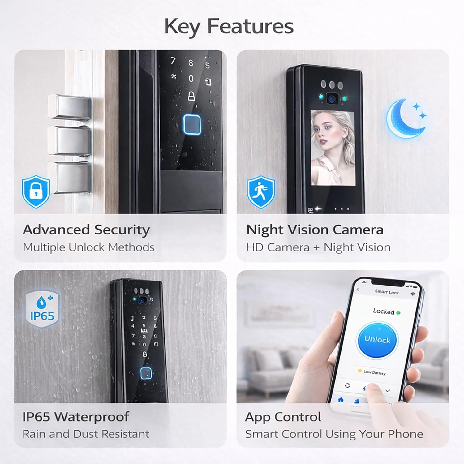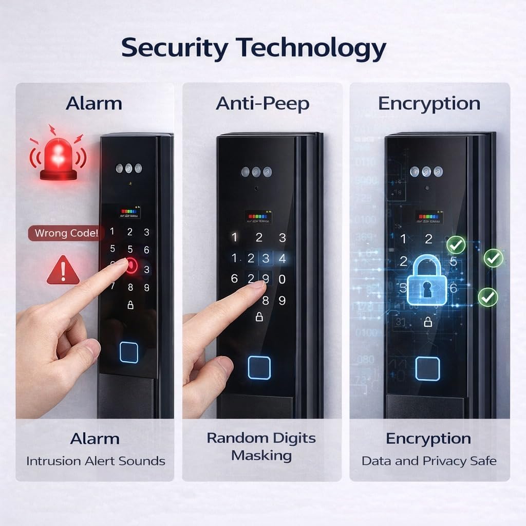 Elevate your home's security and convenience to an unprecedented level with the Wishome Smart Door Lock. This isn't just a lock; it's your intelligent home guardian. Experience the future with lightning-fast 3D facial recognition that unlocks your door as you approach. Stay visually connected with a built-in video intercom, allowing you to see and speak with visitors from anywhere via your smartphone. With multiple access methods including fingerprint, password, IC card, and traditional keys, this robust lock offers seamless keyless entry for your entire family. Embrace a smarter, safer lifestyle with Wishome.