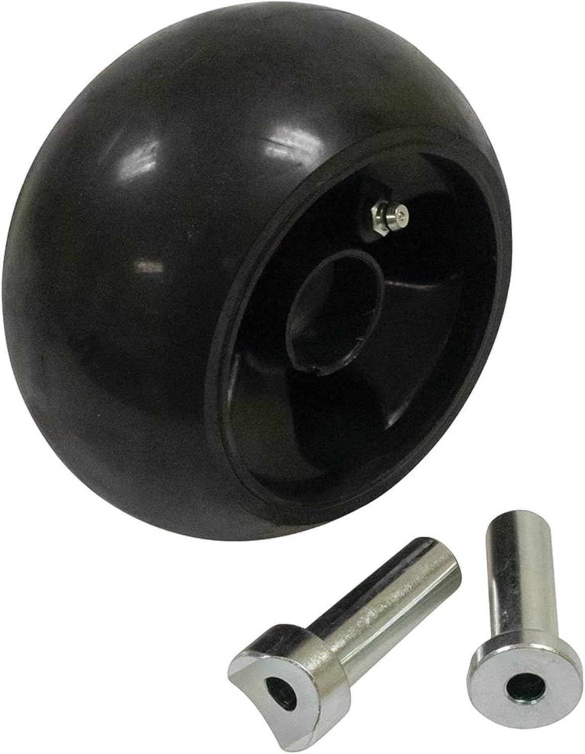 **Verify the part fits before purchasing**Specs:Description: Deck Wheel KitWheel Size: 5x2 3/4Hub: 2 1/2"Bore Size3/8"Bushing included - bore size 5/8" without bushing 3/8" with bushingWidth: 2 3/4"Grease ZerkMaterial PlasticOD: 5"Replaces OEM Numbers:John Deere: AM125172Compatible/Replacement For:John Deere: 1550 TerrainCut Front Mower (with 60, 62 or 72-inch Deck), 1570 TerrainCut Front Mower (with 60, 62 or 72-inch Deck), 1575 TerrainCut Front Mower (with 60, 62 or 72-inch Deck), 1580 TerrainCut Front Mower (with 60, 62 or 72-inch Deck), 1585 TerrainCut Front Mower (with 60, 62 or 72-inch Deck), 2025R Compact Utility Tractor ( -1LV2025RCHH100000)(Worldwide Edition), 240, 245, 260, 265, 285 & 320, 325, 335 and 345, 48-Inch Commercial Walk-Behind Mower, 48-Inch, 54-Inch and 60-Inch Mower Decks and 48-Inch Replacement Decks for Tractor-Mounted Mowers (120, 140, 300, 312, 314, 316, 317, 318, 322, 330, 332, 425, 445, 455 LAWN TRACTORS), (48-Inch, 54-Inch and 60-Inch Mower Decks for F620,F680 and F687 ZTrak Mowers), (48-Inch, 54-Inch and 60-Inch Mower Decks for F620,F680 and F687 ZTrak Mowers), (54-in.,54C,60-in.,62C,72-in. Mower Decks for 2210,4010,4110,4115,4210,4310,4410,4510,4610,4710 Compact Utility Tractors), (54-Inch, 60-Inch and 72-Inch Mowers for 4100, 4200, 4300, 4400, 4500, 4600, 4700 Compact Utility Tractors), (60-In. and 72-In. Side Discharge Mower Decks (7 Iron) and 600L MCS for 1400/1500 Series Front Mowers), (60-Inch Commercial Rear Discharge Mower Deck For 2520 C.U.T. and 495, 595 X-Series Tractors), F710, F725, F735, GS25, GS30, GS45, GS75, GX325, GX335, GX345, GX355, HD45, HD75, LX280, LX289, (Mower Decks and Material Collection System for: 325, 335, 345, 355D, X465, X475, X485, X495, X575, X585, X595, X700, X720, X724, X728, X740, X744, X74), LX200 Series, GT225, GT235, GT235E, GT245, LT170, 2305, 2X20/3X20/4X20 Series, X330, X350, X354, X370, X380, X384, X390, X394, X570
