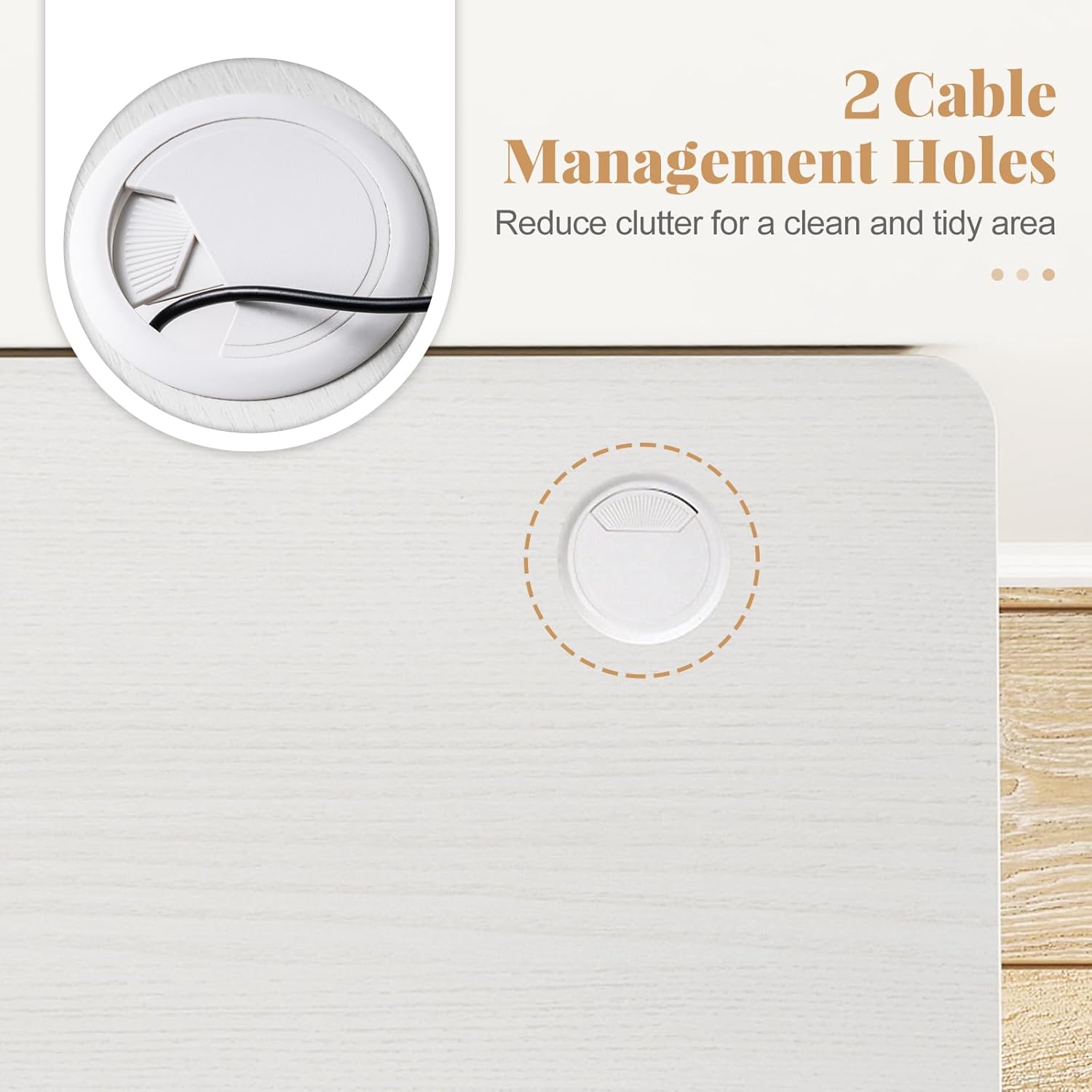DescriptionPerfect solutions to help transform your workspace!The expansive surface promotes better organization, which is ideal for various work and leisure activities. Moreover, this wooden desk panel is crafted to fit most standing and height-adjustable desk frames. Featuring pre-drilled holes, the large desktop ensures easier installation, though some frames may require additional drilling. The integrated cable holes reduce wires tangling and improve desk aesthetics. Besides, this solid one-piece tabletop combines functionality with style to enhance any workspace.Note: please use screws of proper length (8-10 mm) for secure assembly (not included), and drilling may be needed when installed with other framesFeatureLarge universal tabletop to create your very own sit-stand workstationAmple storage space for computers, cups, lamps, books and stationeryCompatible with sit-to-stand desk frames, metal legs and wooden legsThickened tabletop ensures excellent durability and sturdiness2 cable management holes reduce clutter for a clean and tidy areaSmooth & round corners to prevent bumps and scratchesEasy-to-clean surface requires minimal maintenanceSpecificationColor: Black/White/WalnutMaterial: Engineered WoodOverall Dimensions: 48” x 24” x 1” (L x W x H)Net Weight: 19 lbsWeight Capacity: 200 lbsPackage includes:1 x Tabletop