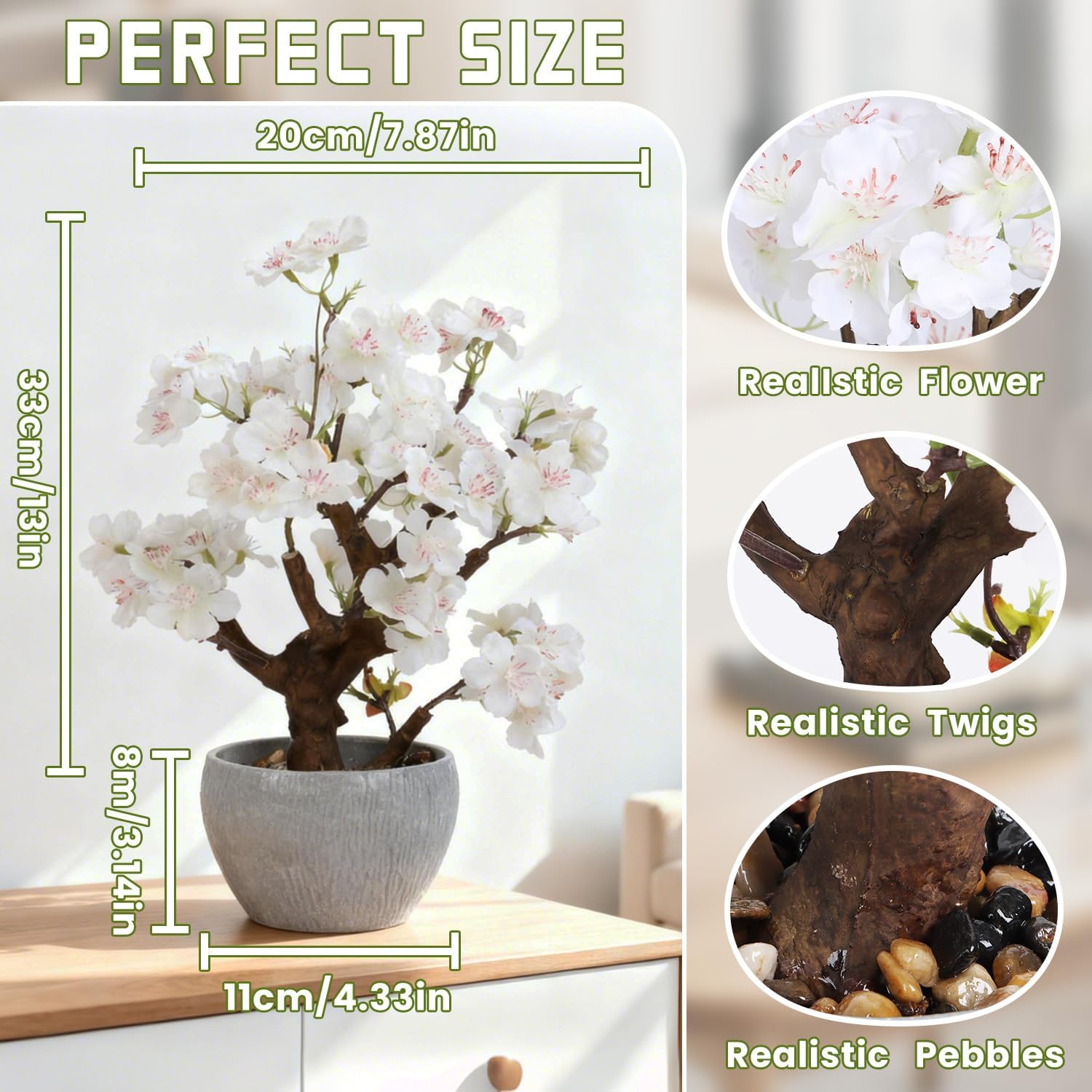 | Color | White Cherry Blossoms-small 12.6'' |