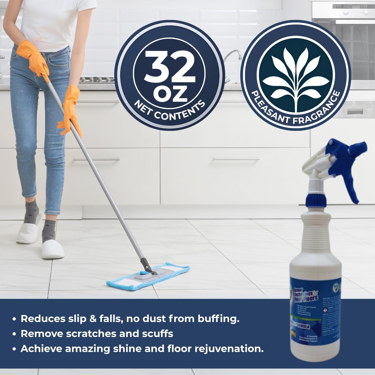 Ultra Shield Armor Guard Protector is a high-performance floor coating that provides exceptional protection against stains, scuffs, and scratches. Using proprietary Nano-Particulate Xpolymer Technology (NPXT), it creates a surface up to 7 times more durable than traditional acrylic finishes. Armor Guard Protector is ideal for various flooring types, including tile and laminate, offering enhanced resistance to water, dirt, and wear. With just two coats and no stripping required, it delivers long-lasting protection and a lustrous, smooth finish.Floor PreparationStrip existing finishes, including new/factory-installed coatings, to ensure proper adhesion.Dust mop to remove grit and particles. Clean stains thoroughly.Rinse floor after stripping to prevent adhesion issues and discoloration.Application ProcedureBurnish the entire floor using a Sidewinder 1500 or 3000 Grit Floor Pad for better gloss.Apply a thin, even coat of Armor Guard Protector with a clean microfiber mop or floor mop, covering 2,500-3,000 sq. ft. per gallon.Allow 20-30 minutes for drying (longer for porous surfaces).Wait 15 minutes after drying before applying a second coat.After 24 hours, burnish the floor for at least 5 passes with a Stone-Glo Sidewinder Floor Pad. Burnish 1-2 times per week for long-term durability and gloss.Ongoing MaintenanceDust mop regularly.Damp mop or use an auto scrubber with neutral pH floor cleaner for mopping as needed.Burnish floors periodically to maintain gloss. Reapply Armor Guard Protector if gloss fades in traffic areas. You may also use mop soap when mopping for effective cleaning.