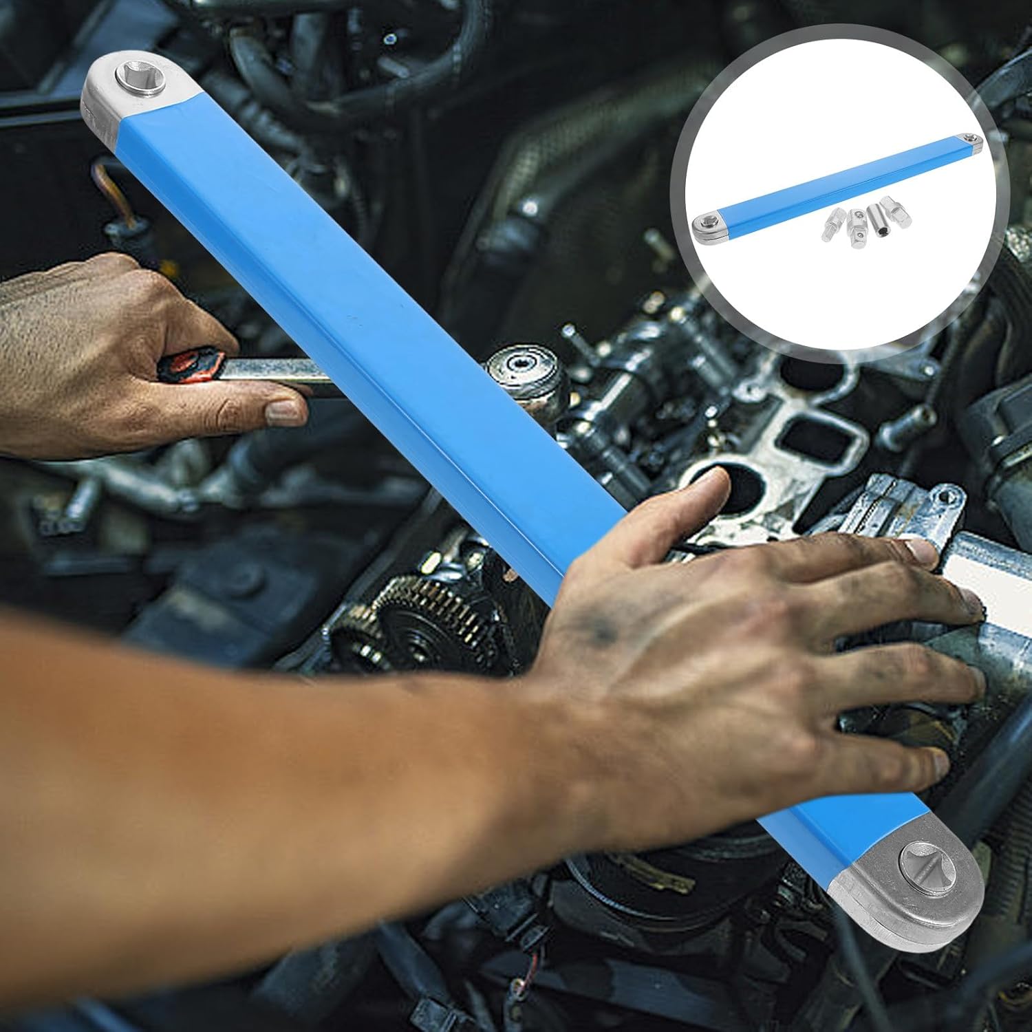 Package List 1 x extension wrench, 4 x accessories Features -Product Info:Extended wrench -Lightweight and portable: compact and lightweight design makes it easy to carry and store, suitable for travel use universal socket wrench tool -Versatile functionality: serves as both a wrench and a ratchet, making it ideal for a wide range of fastening and loosening tasks pin spanner wrench -Durable metal construction: made from steel, ensuring durability extended ratchet wrench -Material:Metal -Size:39.00X3.70X1.70cm/15.33X1.45X0.67in -Color:Blue -Adjustable extension: features an extendable rod that can be adjusted to the desired length, providing convenience and flexibility during use socket wrench extension -Precision ratcheting: the ratchet mechanism allows for quick and precise operations, enhancing efficiency and accuracy in various applications multifunctional extension wrenchGoods Description wrench Its compact and lightweight design ensures easy portability and storage, making it an essential addition to any toolkit.socket extension Its dual functionality as a wrench and ratchet makes it suitable for various applications.universal socket wrench The multifunctional extension wrench is a versatile tool designed for both tightening and loosening tasks.nematyta The adjustable extension rod allows you to modify the length as needed, providing convenience and flexibility